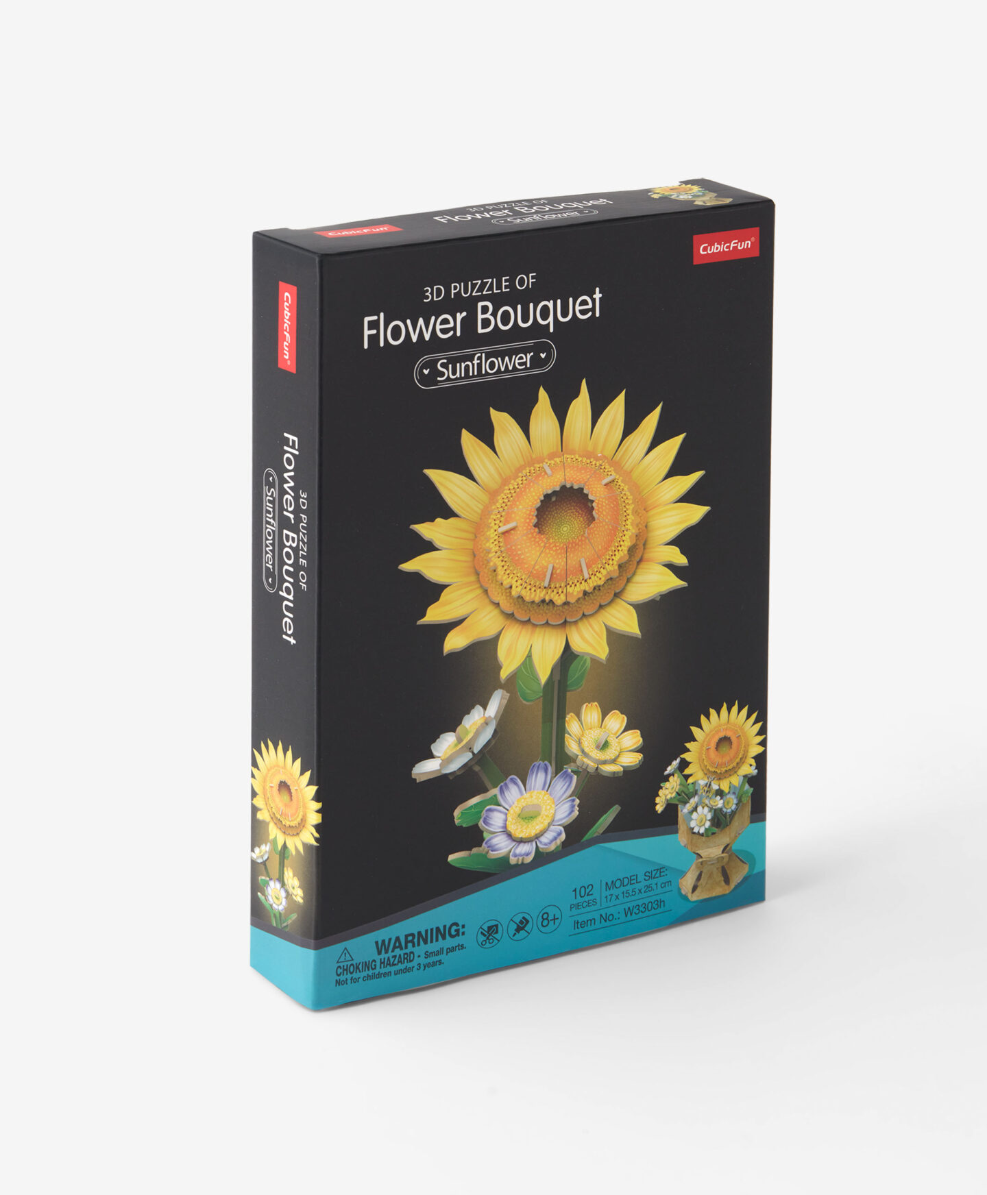 3D puzzle Cvijeće sa suncokretom fokusira se na simbol sunca i vedrine. Sastavljanjem korak po korak, stvarate svijetlu i veselu kompoziciju koja zrači toplinom i pozitivnom energijom. Završeni ukras odiše optimizmom i dugotrajnom ljepotom.