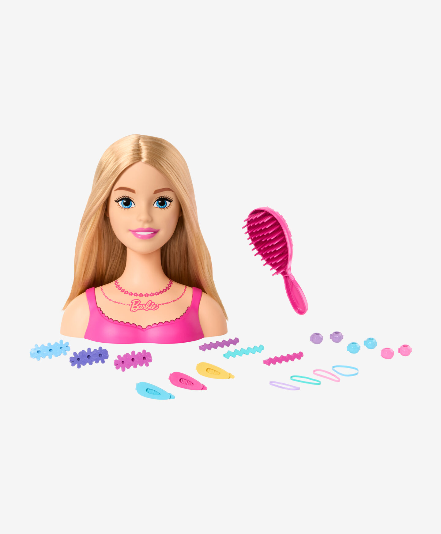 Barbie glava za friziranje savršen je set za male ljubitelje frizura. Njena duga plava kosa može se češljati, plesti i ukrašavati dodacima iz seta. Uz šarene šnale i ukrase, mogućnosti za frizure su beskrajne. Ova igra razvija spretnost i potiče radost stvaranja.