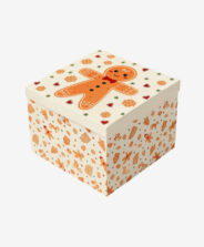 Bež kartonska kutija ukrašena je prazničnim uzorkom koji joj daje notu elegancije. Savršena je za pakovanje kolačića, slatkiša ili malih poklona, stvarajući skladnu cjelinu. Ovakvo pakovanje naglašava jedinstvenost poklona i čini ga još boljim.
