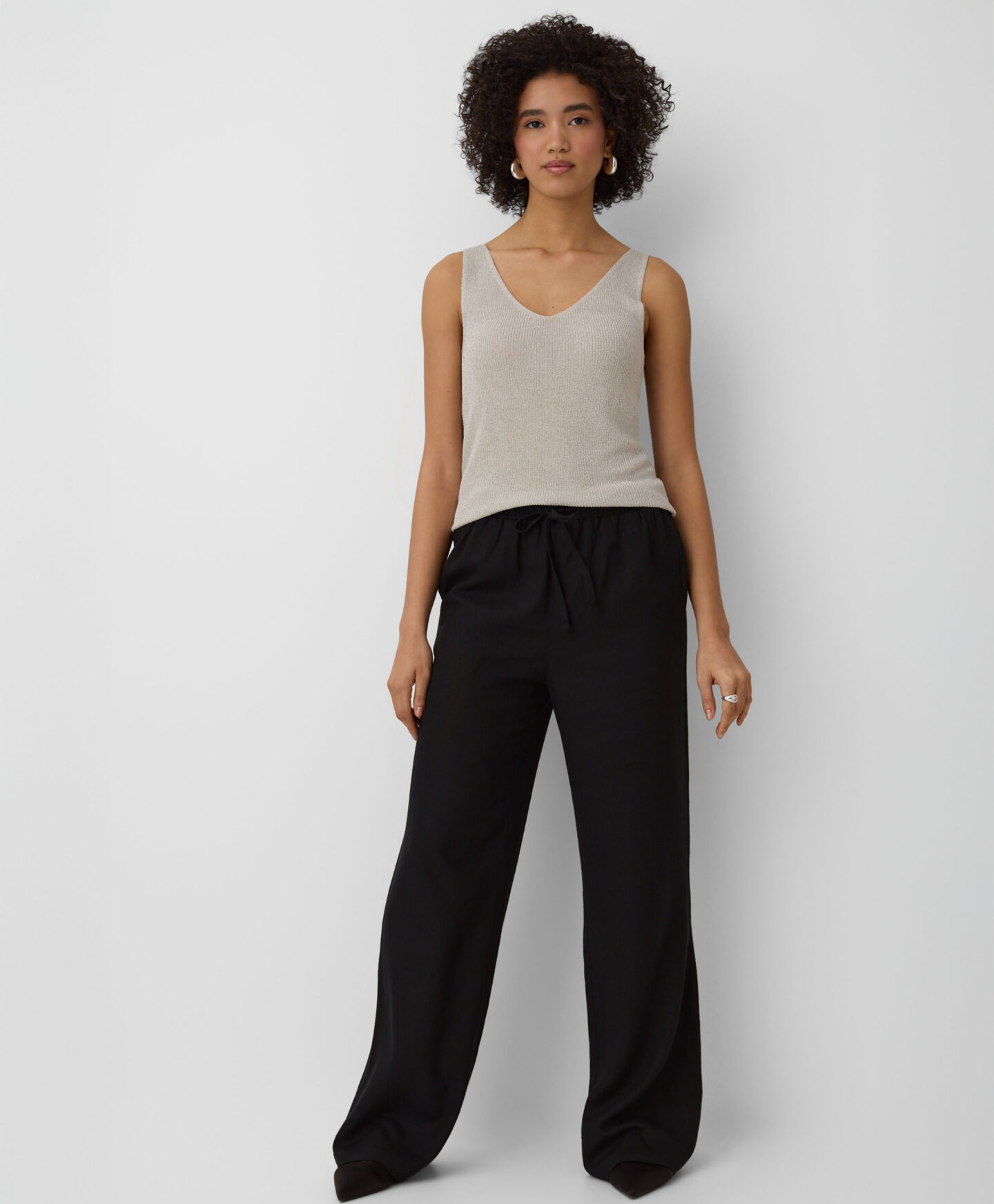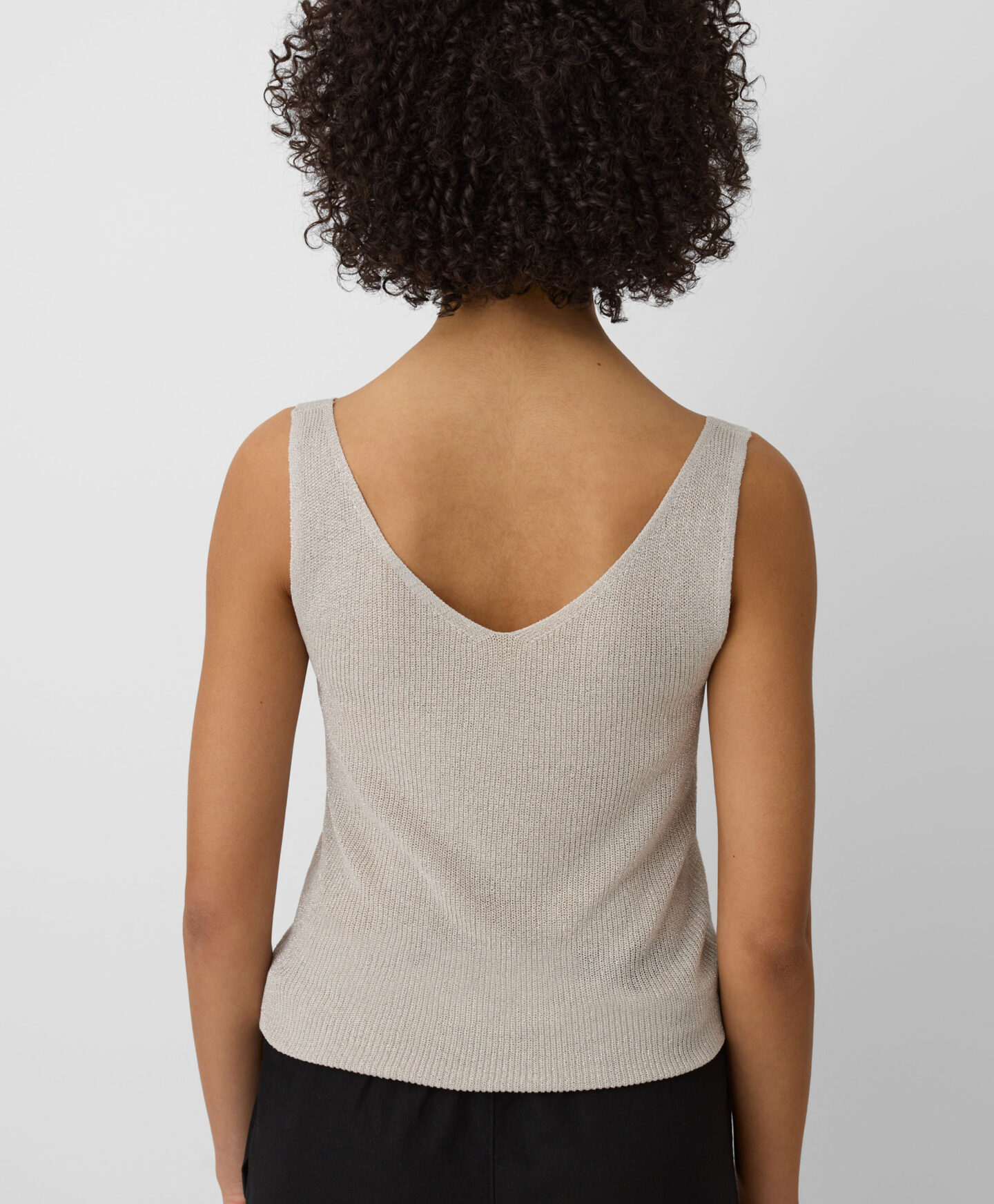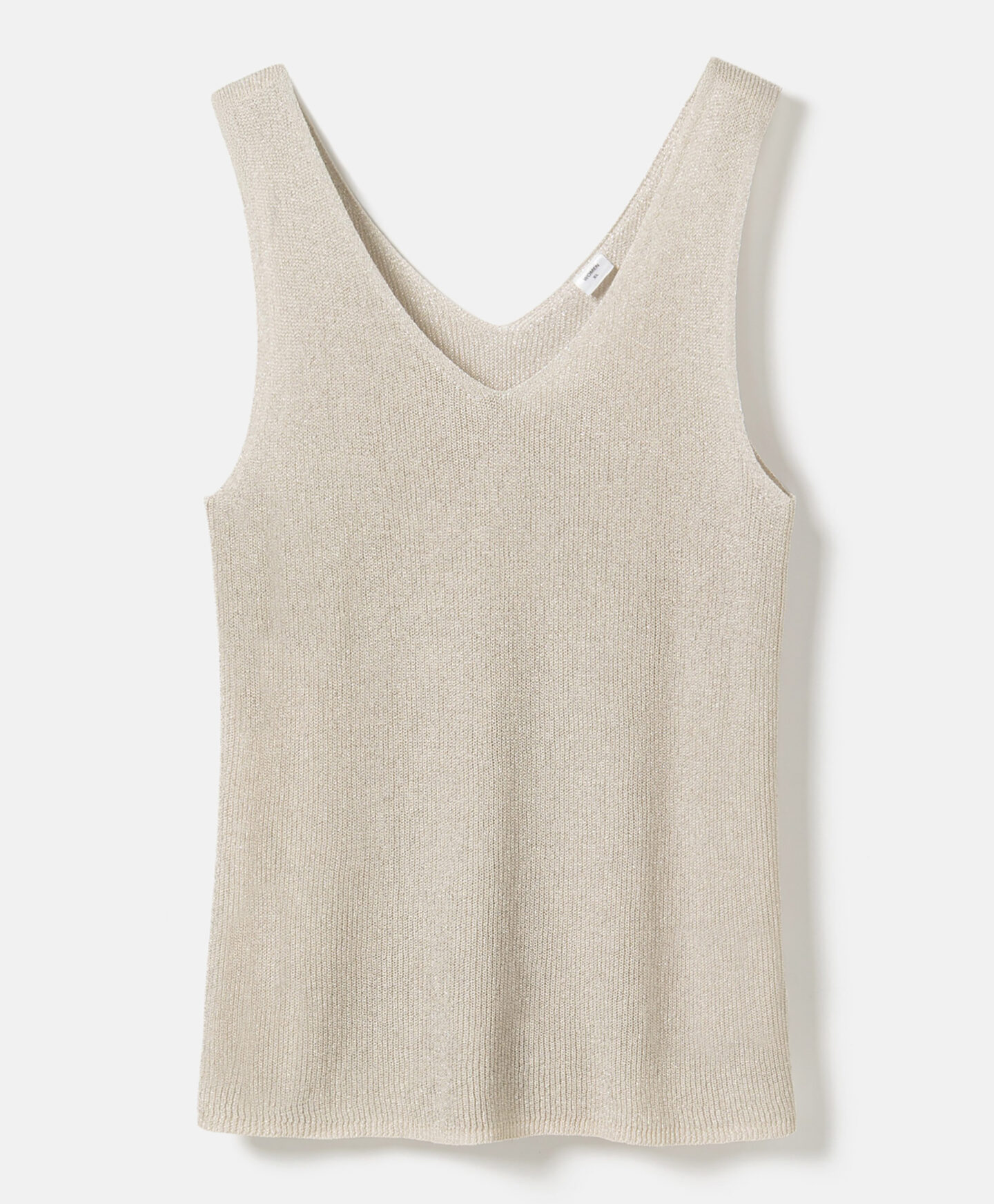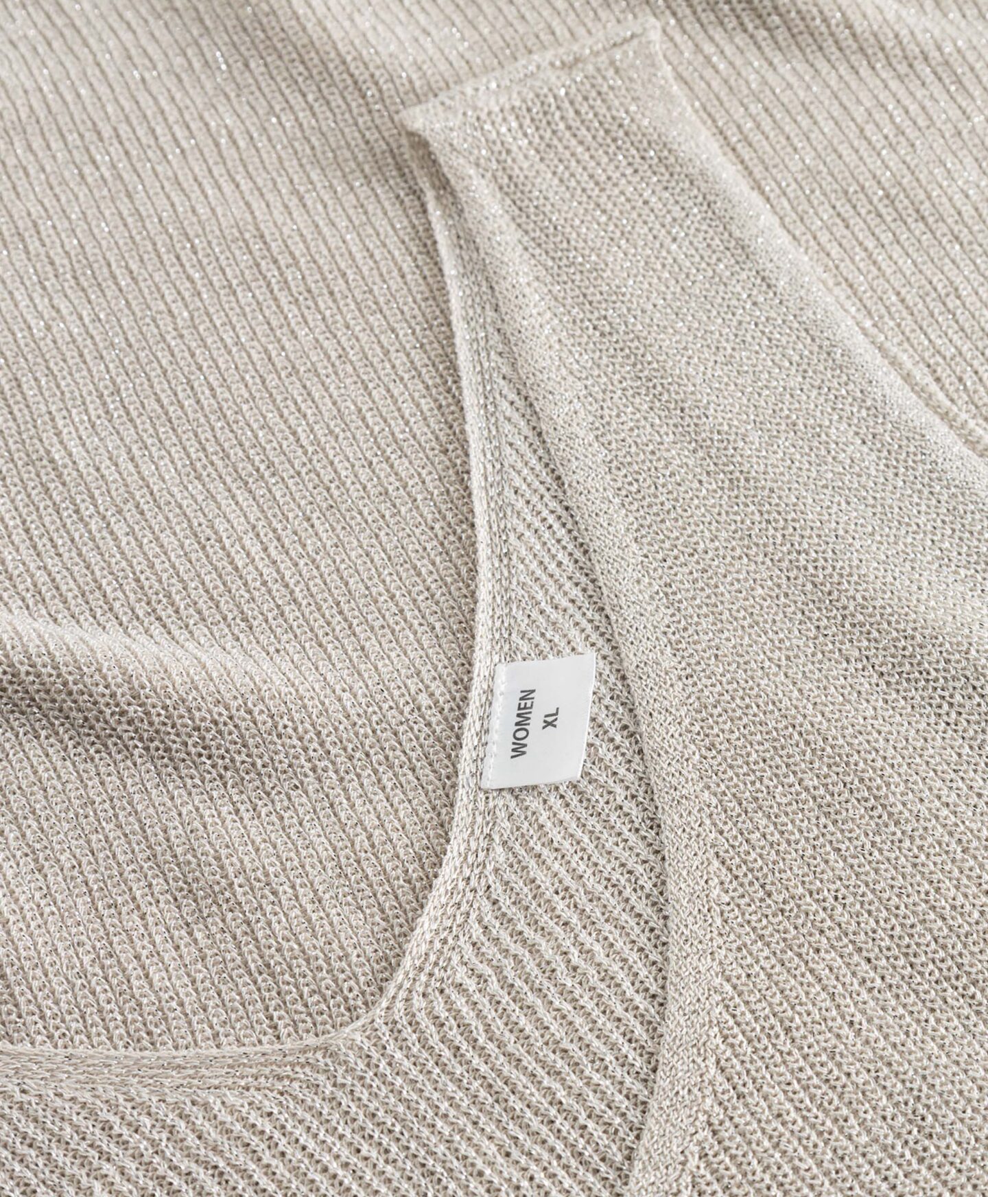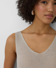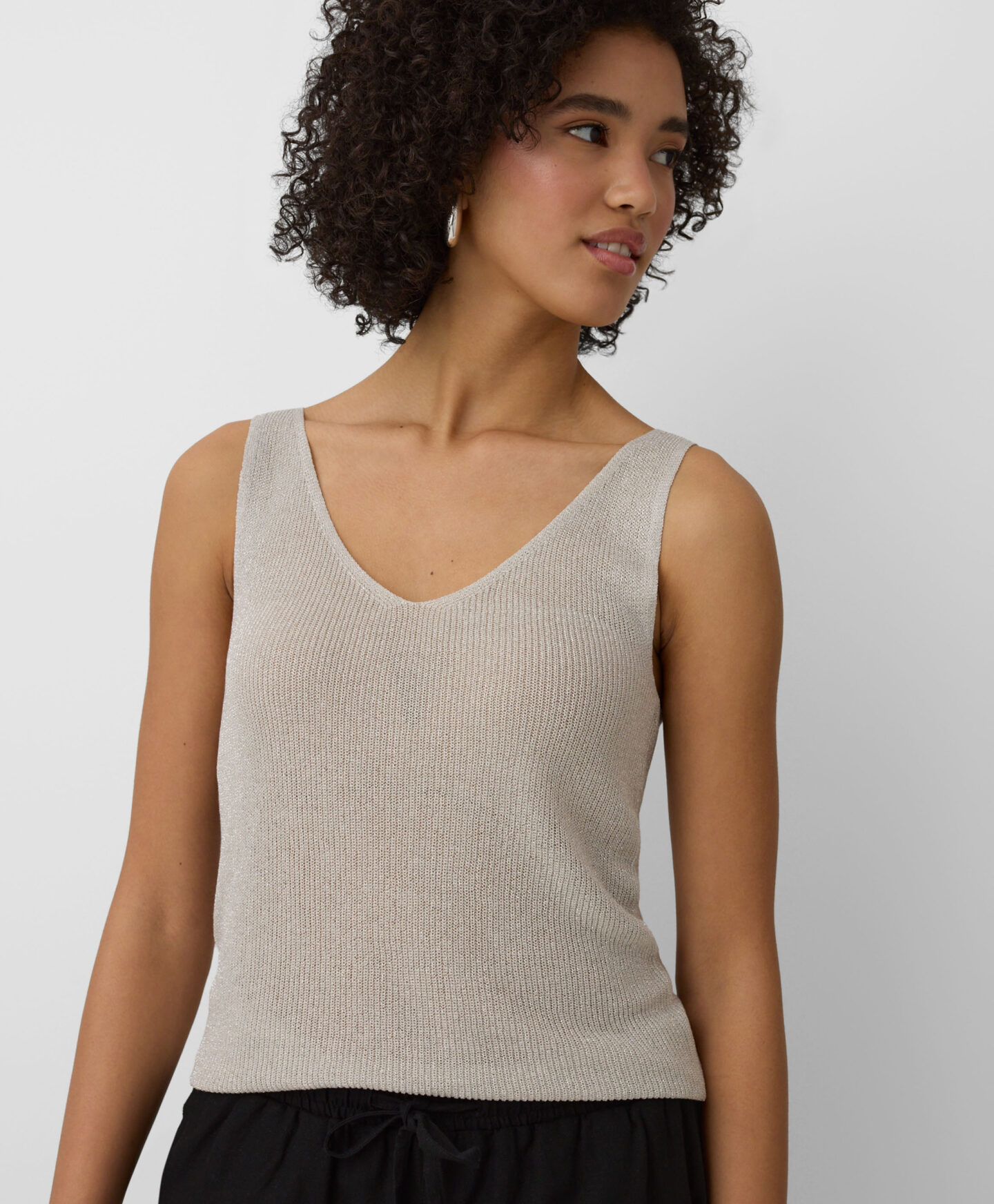 Bež top za žene dodat će dašak sjaja vašoj garderobi! Lagan je, prozračan i omogućava koži da diše. Opušteniji kroj osigurava lakoću nošenja i udobnost pri svakom pokretu. Top izgleda odlično u kombinaciji s elegantnim hlačama ili suknjom.
