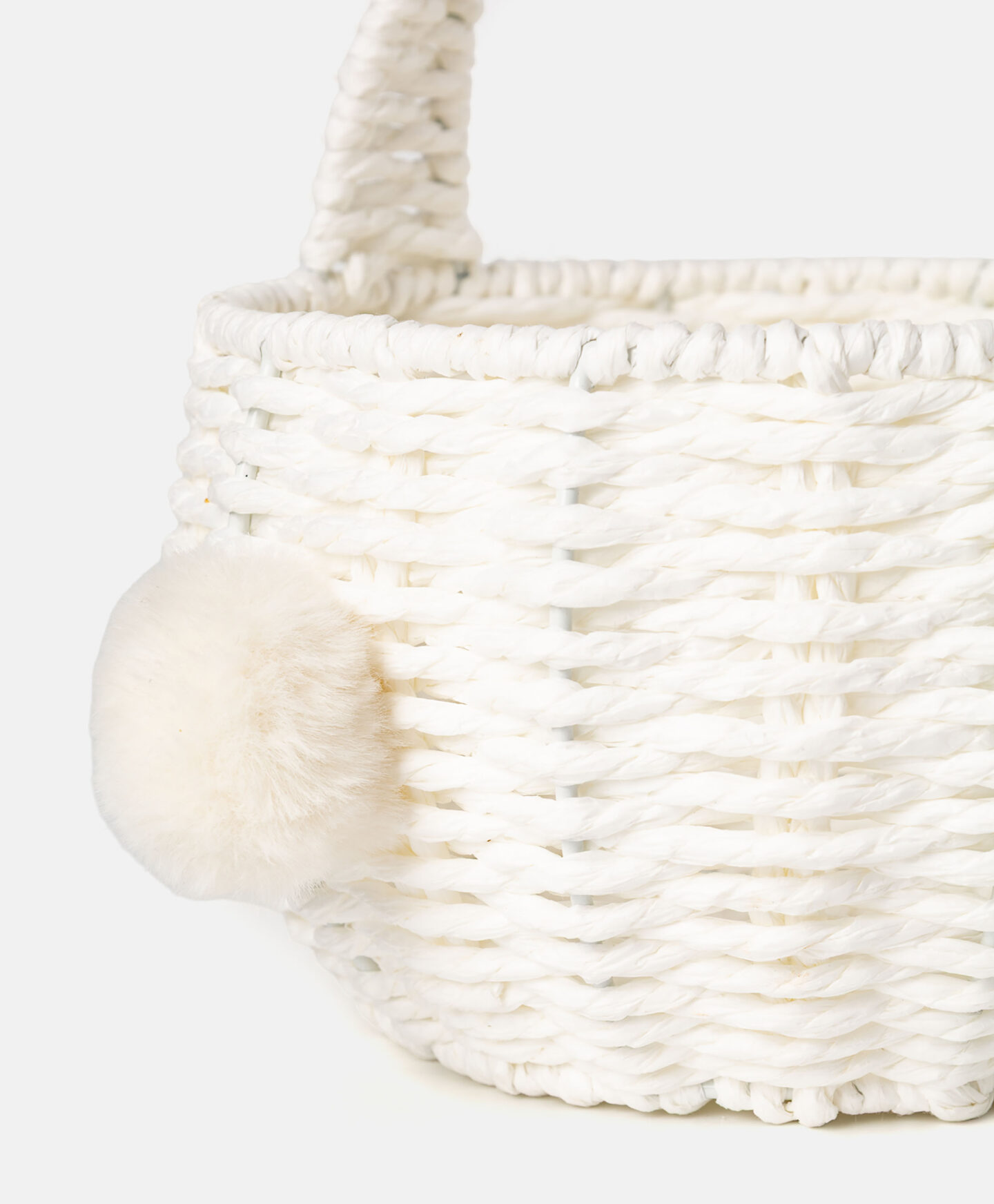 Ova bijela korpa s 3D ušima ima pahuljasti pompon koji joj daje poseban šarm i bajkoviti izgled. Savršena je kao ukrasni element, lijep dodatak dječijoj sobi ili šarmantan detalj u bilo kojem prostoru – samo stavite šarena jaja unutra i vaš uskrsni ukras je spreman! Može se koristiti i kao korpa za skupljanje uskrsnih jaja tokom potrage.