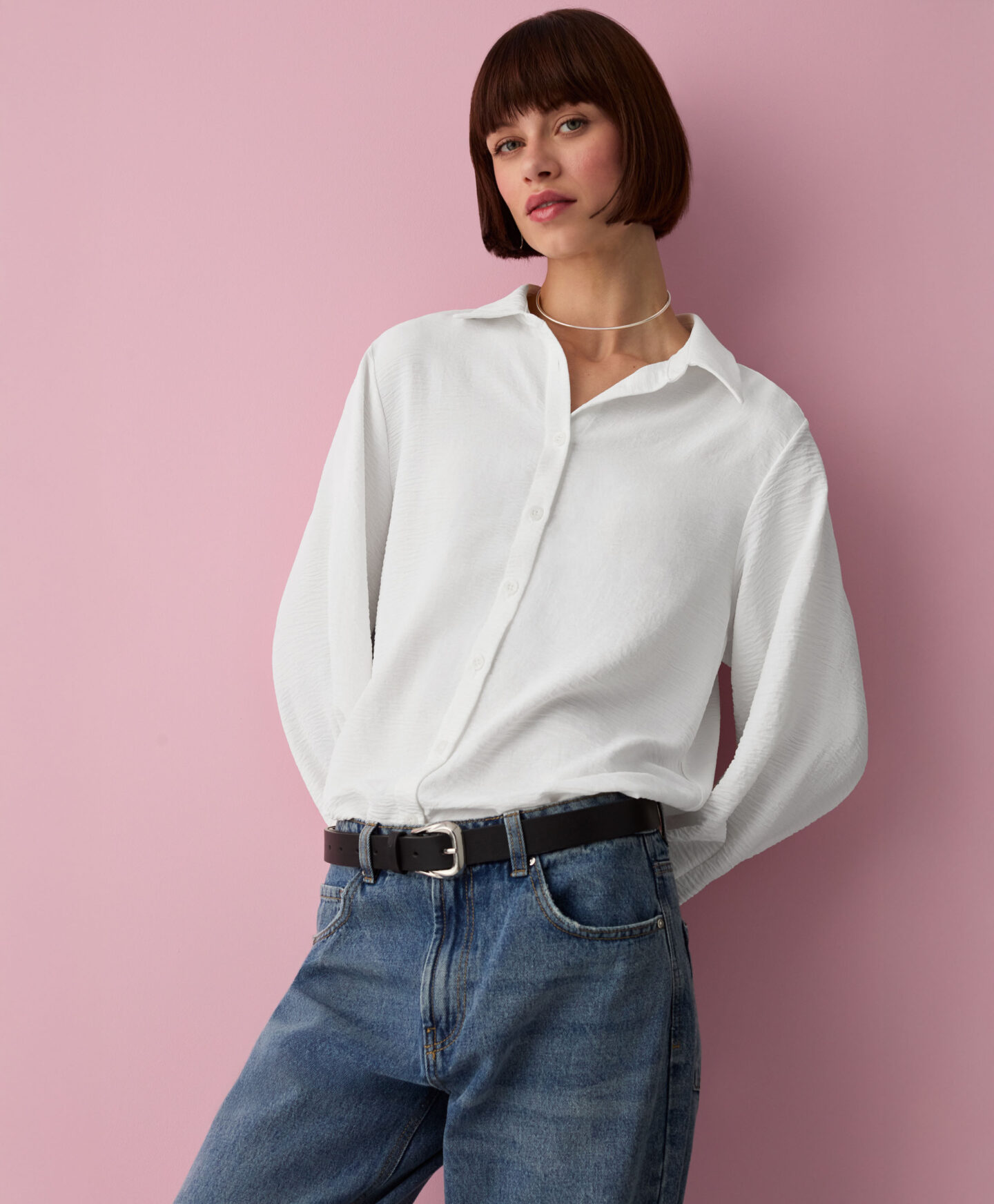 Bijela nabrana košulja za žene savršena je za ljubiteljice klasičnog stila s modernim dodirom. Bezvremenska bijela boja, elegantna kragna i ležerni kroj daju joj sofisticiran izgled, dok nabori dodaju karakter. Odlično se kombinuje s jeansom ili elegantnim hlačama.