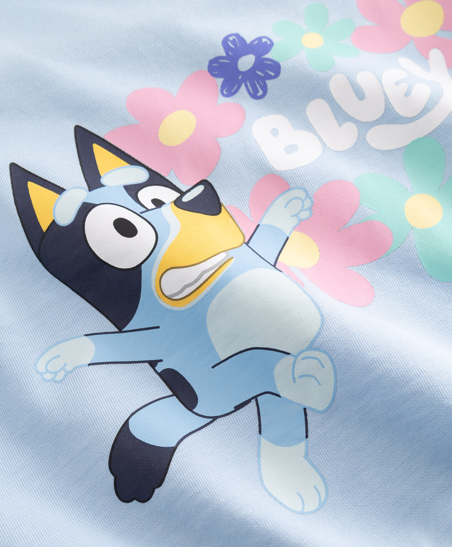Bluey gornji dio trenerke za djevojčice, s udjelom pamuka, ima prelijepu plavu nijansu. Veliki print na prednjoj strani s omiljenim crtanim likom privlači pažnju i čini duksericu posebnom. Udoban je izbor za vrtić, igralište ili opuštanje kod kuće. U ponudi je dostupan i odgovarajući donji dio trenerke.