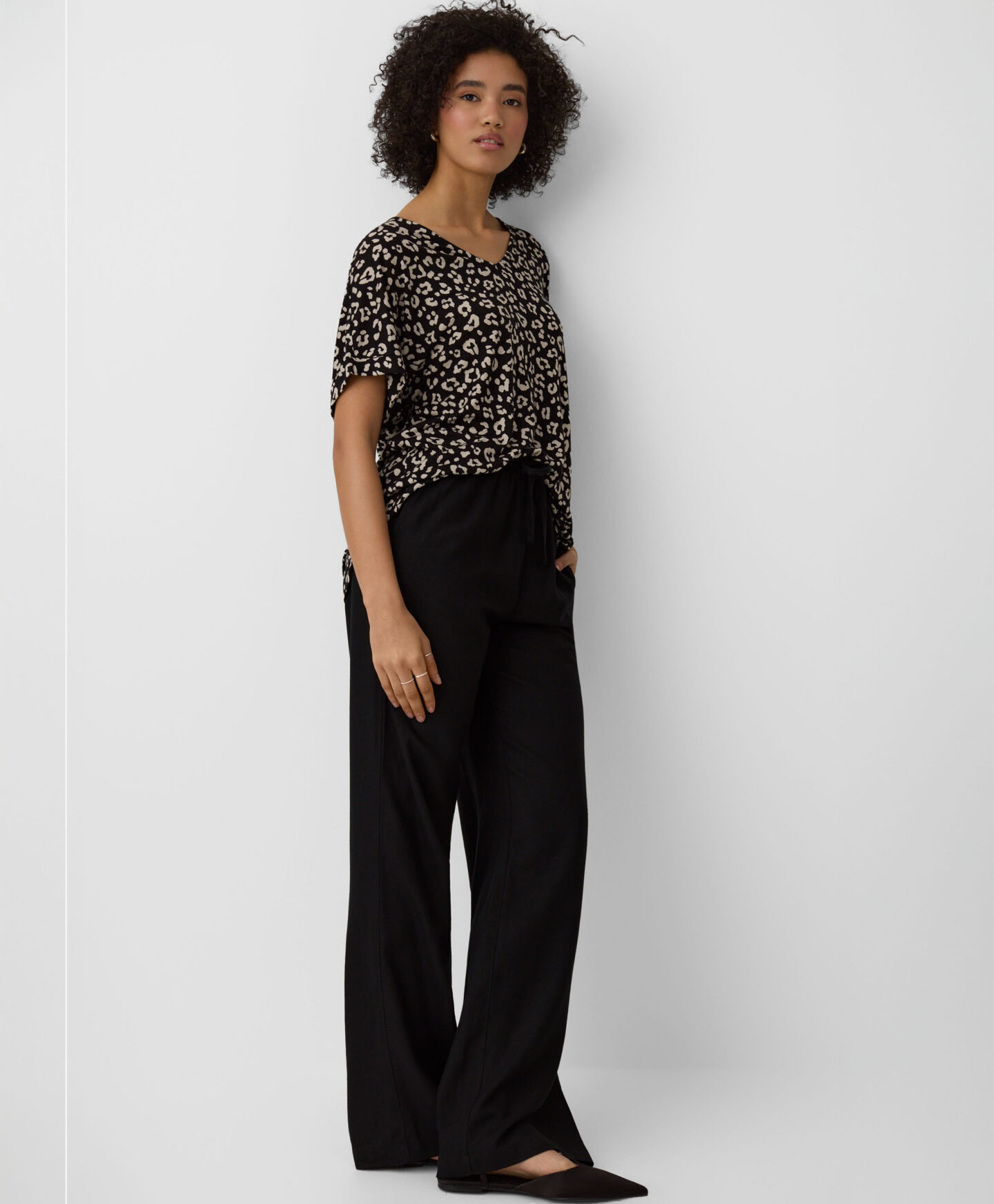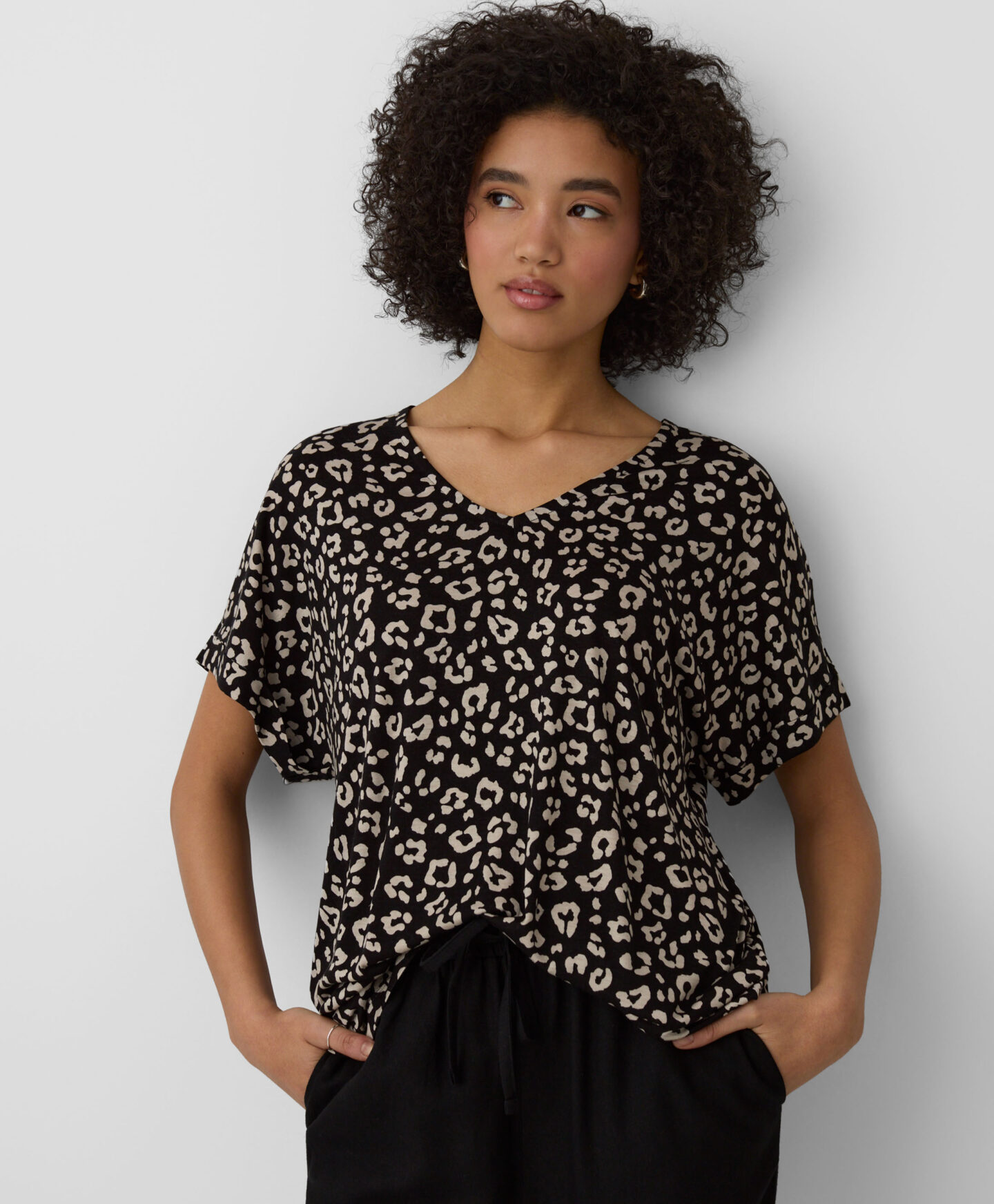 Bluza s V-izrezom za žene, napravljena od 100% viskoze, kombinuje udobnost i svestranost. Kombinujte je s omiljenim jeansom ili elegantnijim hlačama. Savršen je izbor za posao, brzu kupovinu ili porodični izlazak.