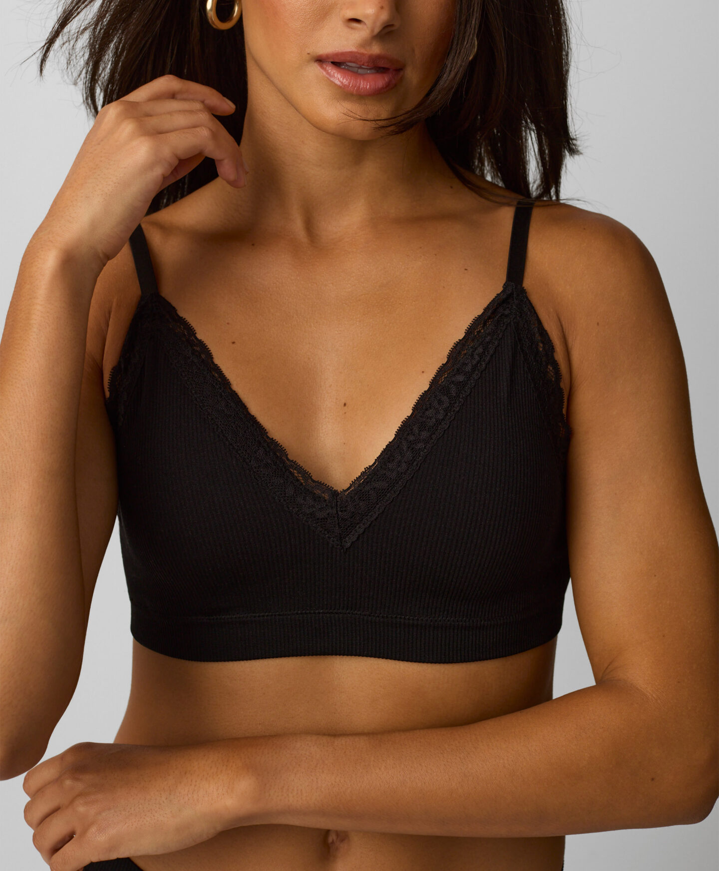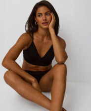 Crni mekani grudnjak s čipkom jedinstvena je kombinacija udobnosti i elegancije. Napravljen od nježnog, na dodir mekanog materijala, savršeno se prilagođava obliku tijela i osigurava cjelodnevnu udobnost. Savršen je za ljeto, ispod lepršavih haljina.