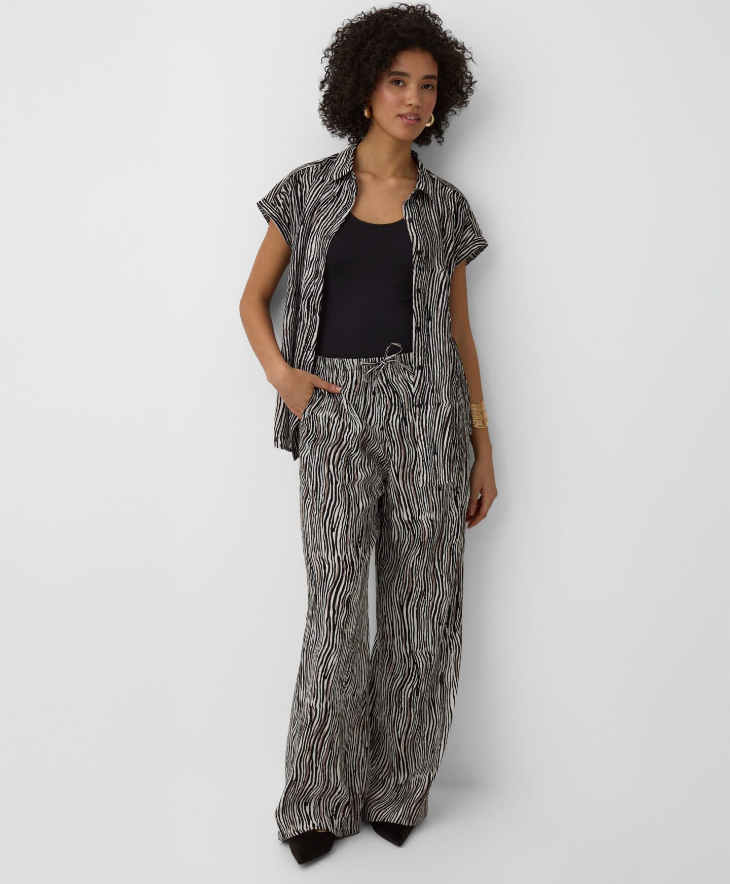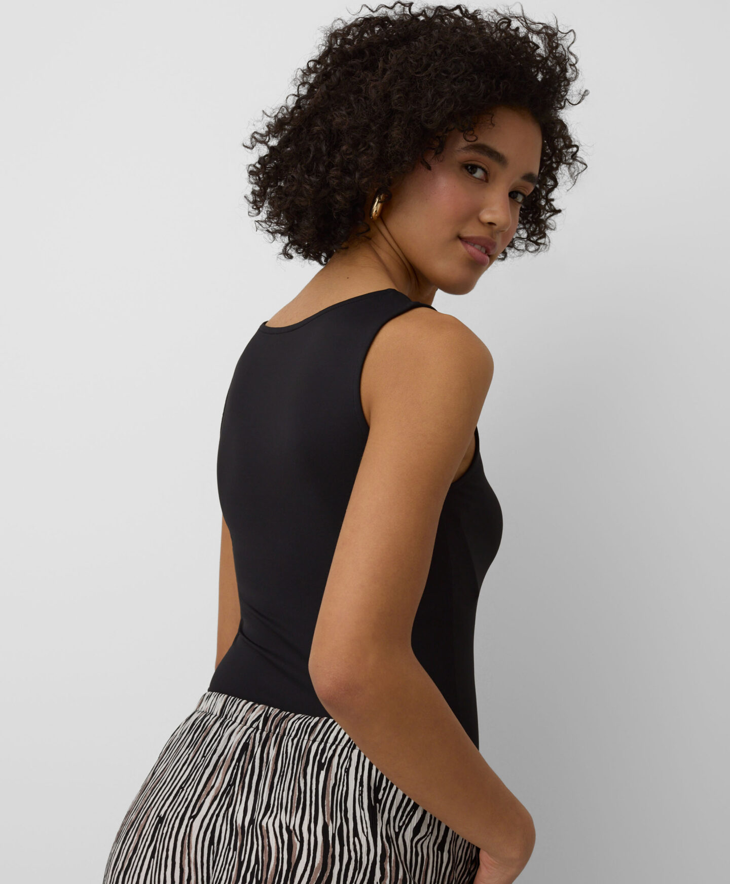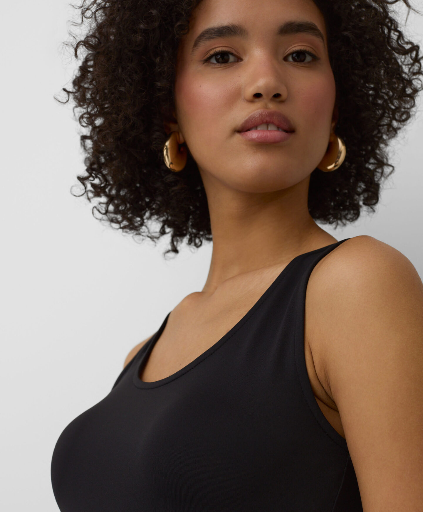 Crni top za žene izuzetno je svestran. Odlično se slaže s jeansom, chinos hlačama, šorcevima i trenerkama. Možete ga nositi ispod jakne ili dukserice. Glatka tekstura i jednobojni dizajn čine ovaj top osnovom svake uspješne kombinacije. Dostupan u tri varijante boja.