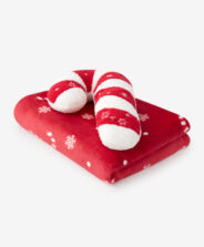 Crvena deka s jastukom praktičan je set koji se može koristiti kod kuće i na putovanjima. Intenzivna boja daje joj praznični karakter, a mogućnost slaganja u oblik jastuka donosi praktičnost. Spreman poklon set.