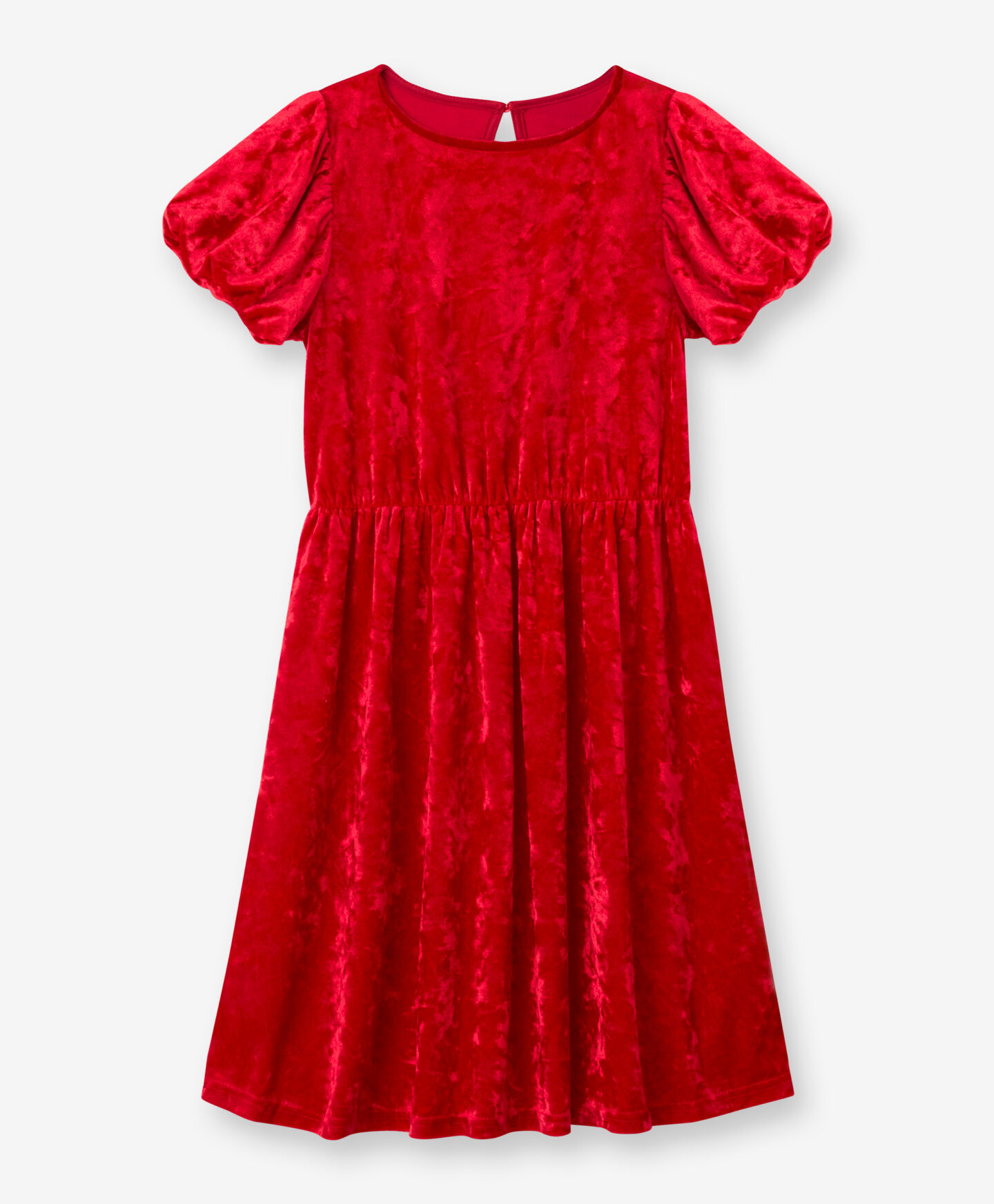 Crvena haljina s efektom šljokica za djevojčice napravljena je od mekanog i elegantnog pliša. Sjajni pliš u kombinaciji s blistavim česticama stvara jedinstven efekat. Savršen je izbor da se svaka djevojčica osjeća posebno i zasja u društvu. U ponudi su dostupne dvije boje.