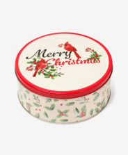 Crvena okrugla limena kutija pravi je klasik u prazničnom izdanju. Ukrašena simpatičnim natpisom i zimskim uzorcima, čini čuvanje slatkiša ili orašastih plodova posebno šarmantnim. Bezvremenski dizajn savršeno se uklapa u i tradicionalne i moderne interijere.