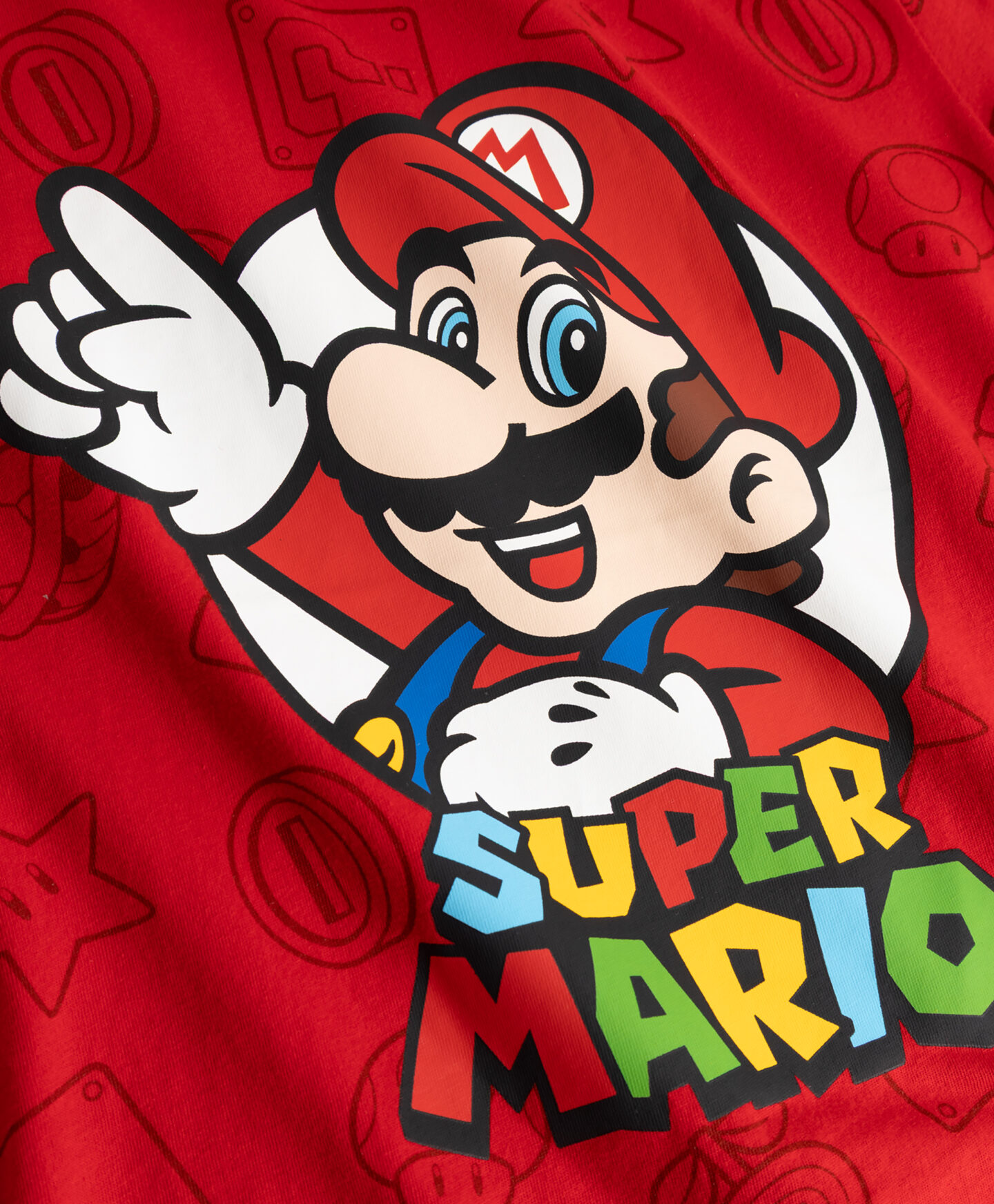 Crvena Super Mario majica za dječake, napravljena od 100% pamuka, savršen je izbor za mlade fanove kultne Nintendo igrice! Veliki print na prednjoj strani privlači pažnju, a klasični kroj omogućava slobodu kretanja. Majica se odlično slaže s jeansom, trenerkama ili šorcevima. Univerzalan je izbor za svaki dan.