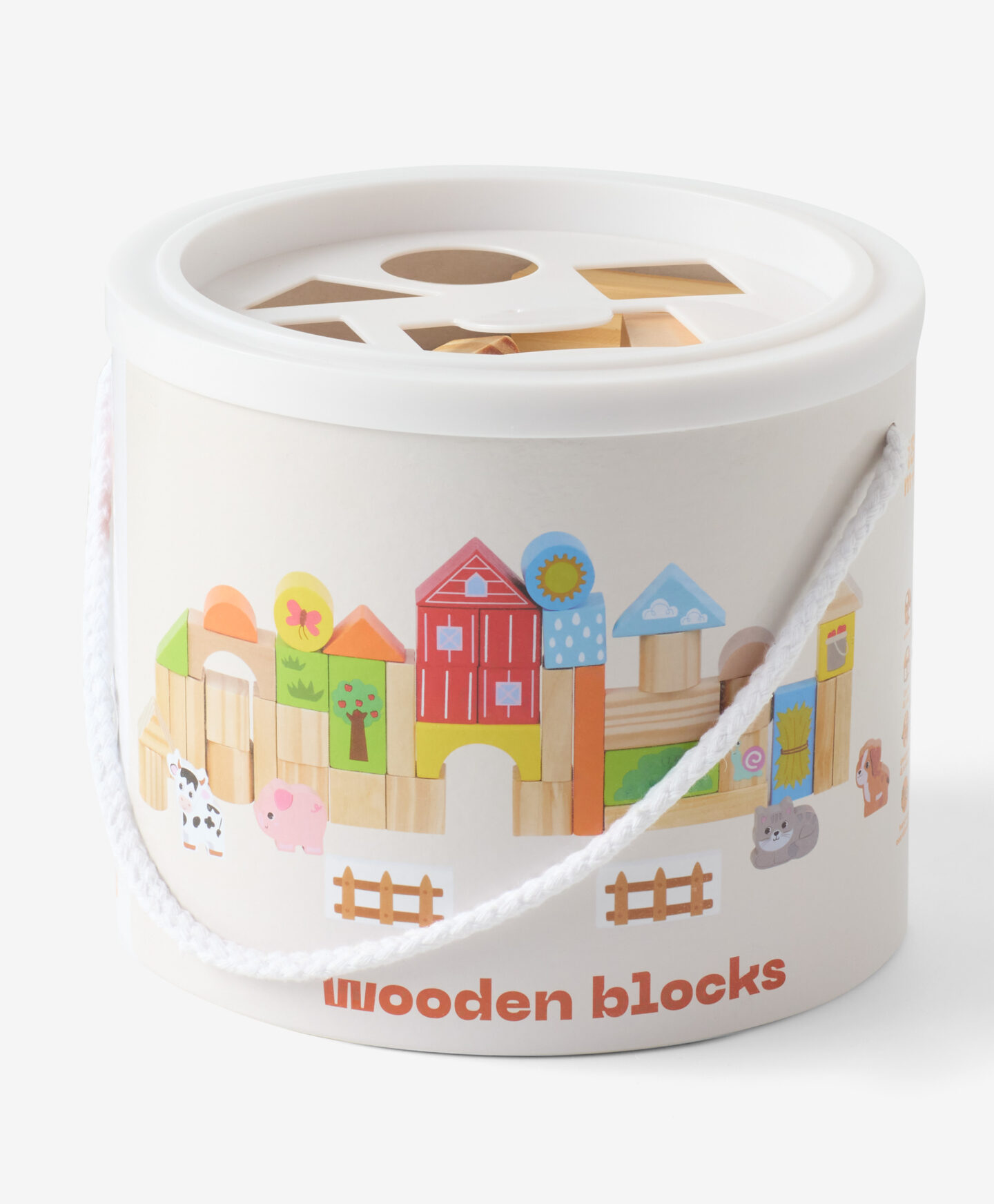 Drveni blokovi od 50 dijelova klasičan su set koji omogućava djeci da grade tornjeve, kuće i čitave gradove. Raznovrsni oblici podstiču kreativnost, a igra razvija motoričke vještine i strpljenje.