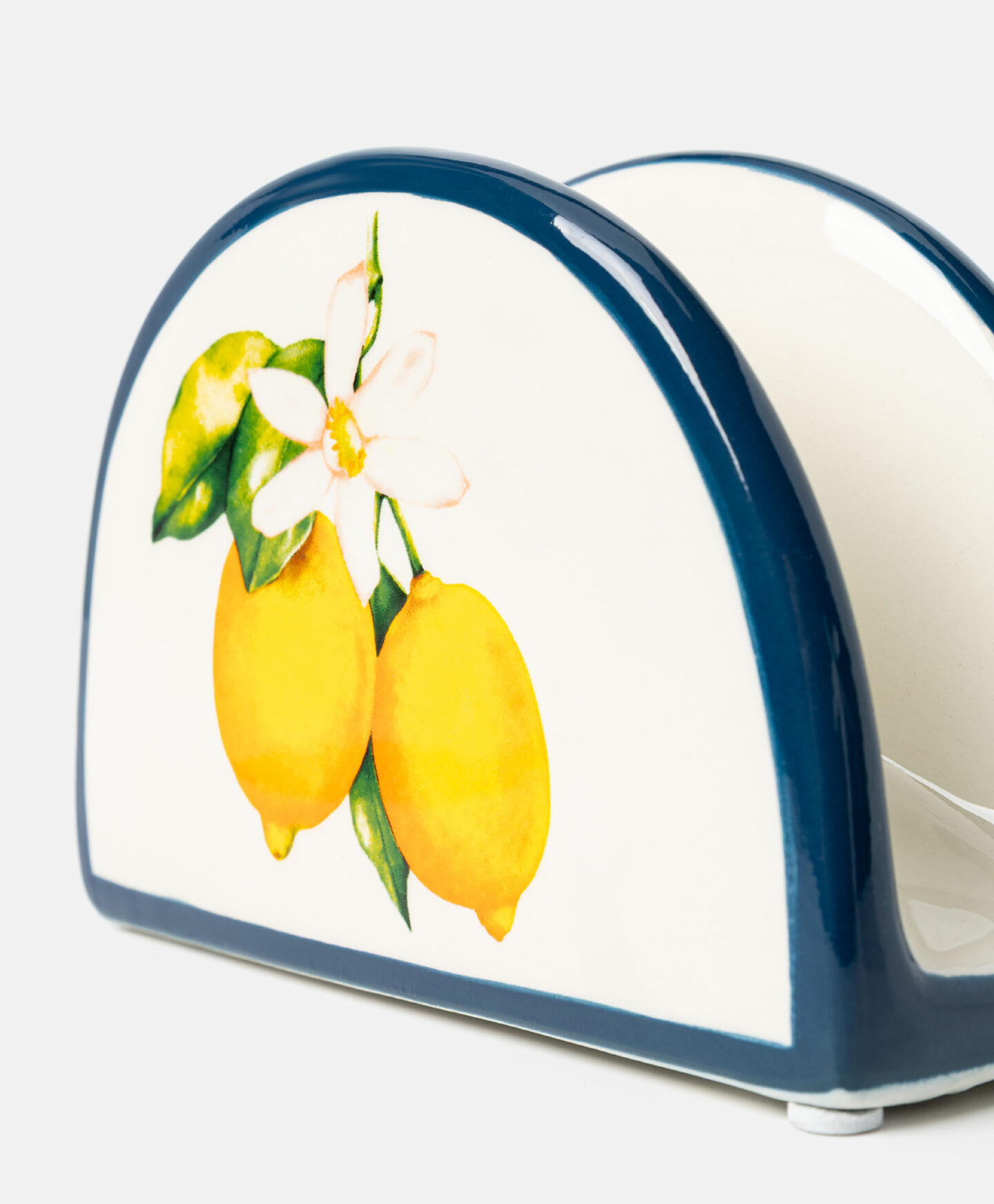 Držač za salvete od dolomita s uzorkom limuna moderan je i funkcionalan dodatak svakoj kuhinji ili trpezariji, koji unosi dašak ljetnog šarma u svakodnevne obroke. Dolomit je izdržljiv materijal otporan na ogrebotine, što osigurava dugotrajnu upotrebu bez gubitka lijepog izgleda. Bogat uzorak inspirisan mediteranskim pejzažem privlači pažnju i ističe se na stolu.