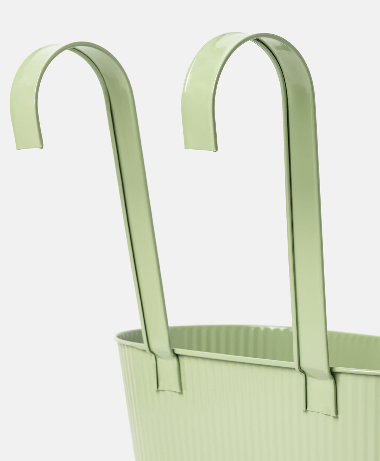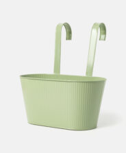 Duga zelena viseća navlaka za saksiju s rebrastim zidovima privlači pažnju svojim proljetnim dizajnom. Praktične kuke omogućavaju postavljanje na balkonsku ogradu ili drvenu površinu, maksimalno iskorištavajući prostor. U ponudi su dostupni različiti uzorci.