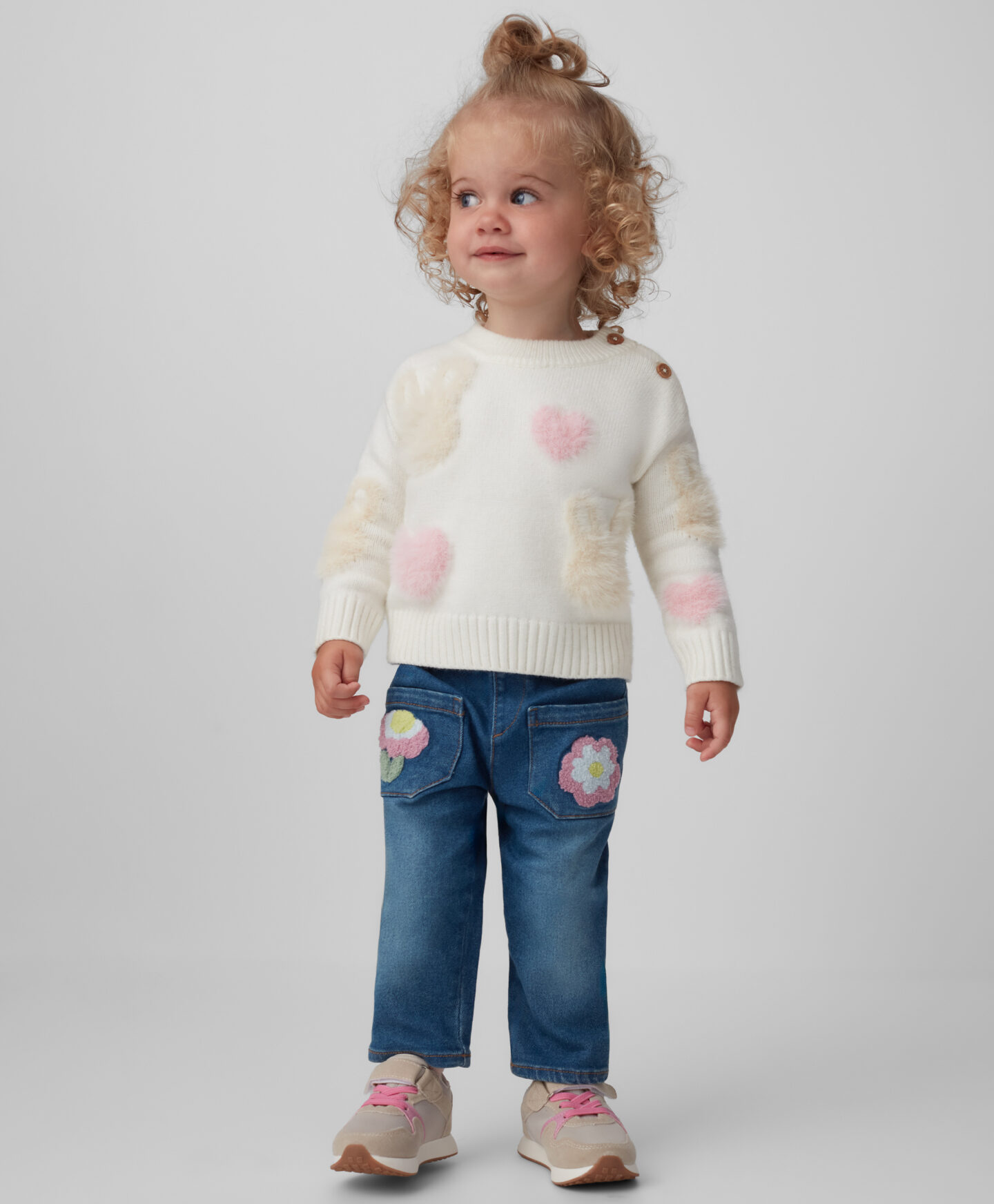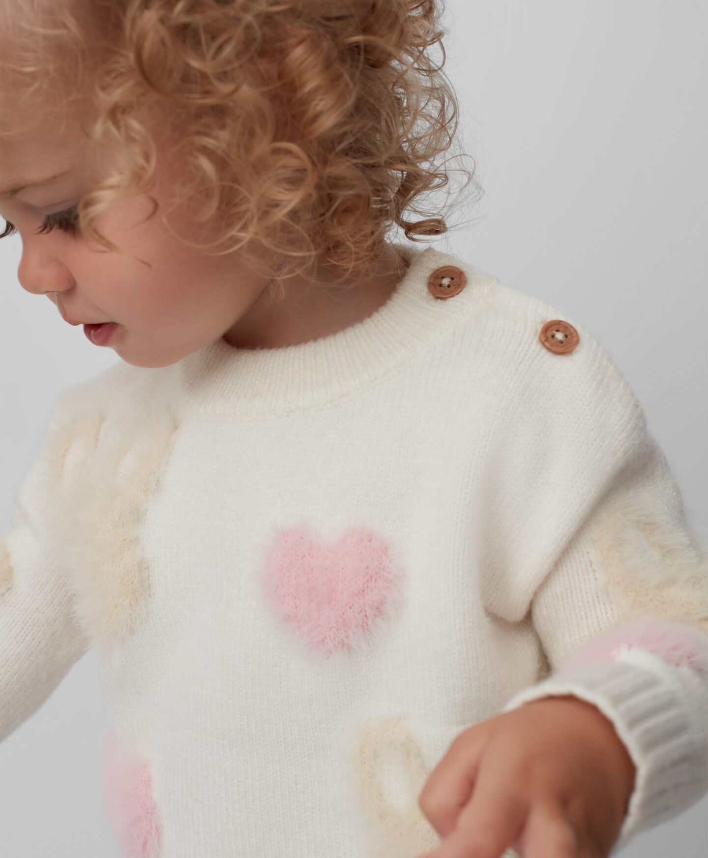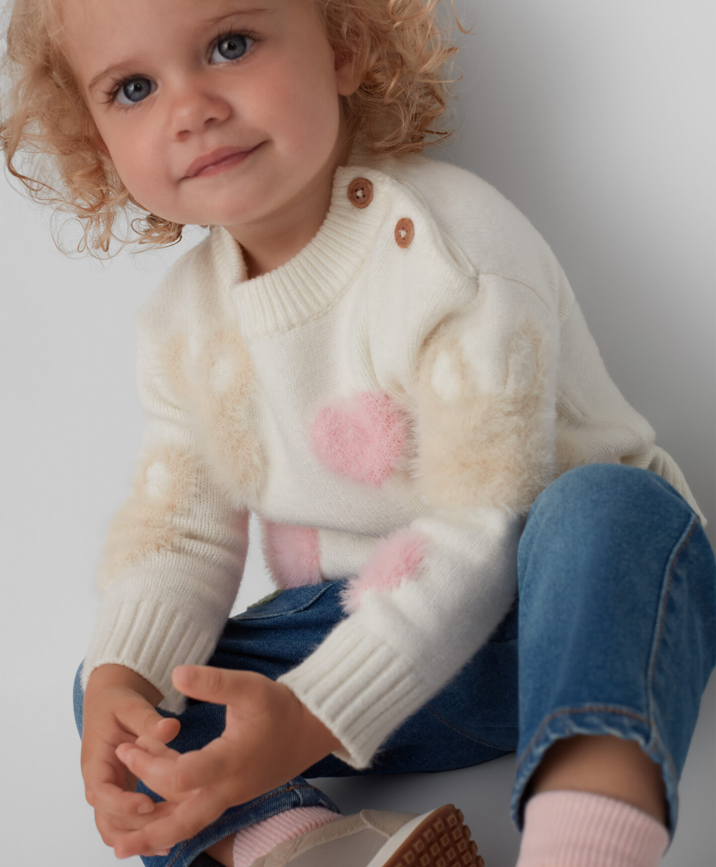 Džemper s dugmićima za bebe-djevojčice praktičan je izbor za svaki dan. Dugmad olakšavaju oblačenje, dok uzorak sa zecom i srcima dodaje šarm svakoj kombinaciji. Džemper je topao, mekan i prijatan na dodir, savršen za nježnu dječiju kožu.