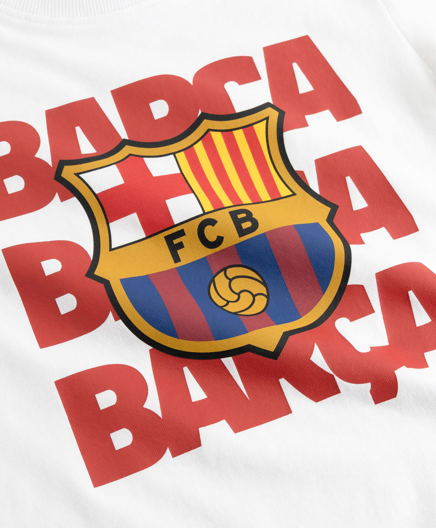 FC Barcelona sportska majica za dječake, s visokim udjelom pamuka, pruža cjelodnevnu udobnost. Neutralna boja lako se uklapa uz garderobu, a logo omiljenog kluba izmamit će osmijeh svaki put kada je dijete obuče.