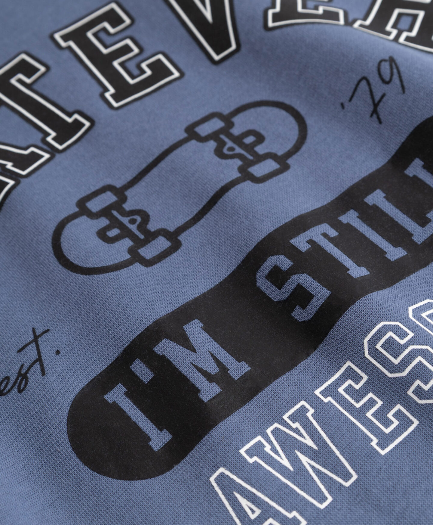 Gornji dio trenerke s printom skejtborda za dječake savršen je za svaki dan. Napravljen od mekog pamučnog materijala, nježno obavija kožu i osigurava udobnost. Klasični kroj omogućava slobodu kretanja. U ponudi je dostupan i odgovarajući donji dio trenerke.
