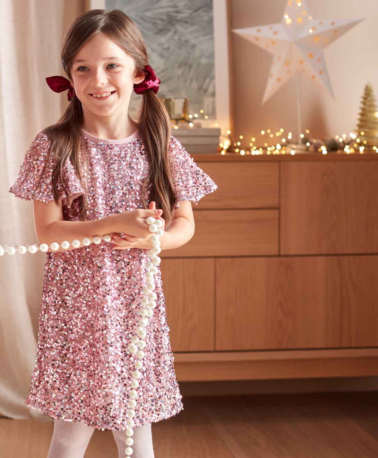 Haljina sa šljokicama za djevojčice učinit će da se svaka djevojčica osjeća posebno. Sjajne šljokice predivno reflektuju svjetlost, dajući outfitu bajkovit izgled. Savršen izbor za djevojčicu koja voli da se istakne i zasija u svakoj situaciji.