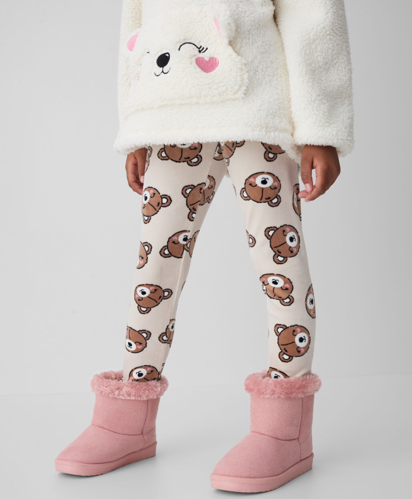 Plišane helanke s medvjedićima za djevojčice osvojit će srce svake male dame. Topao i mekan materijal prijatan je na dodir, a rastezljiva tkanina pruža udobnost pri nošenju. Savršene su za kuću, šetnju ili vrtić, a odlično se kombinuju s duksericom, džemperom ili majicom dugih rukava.