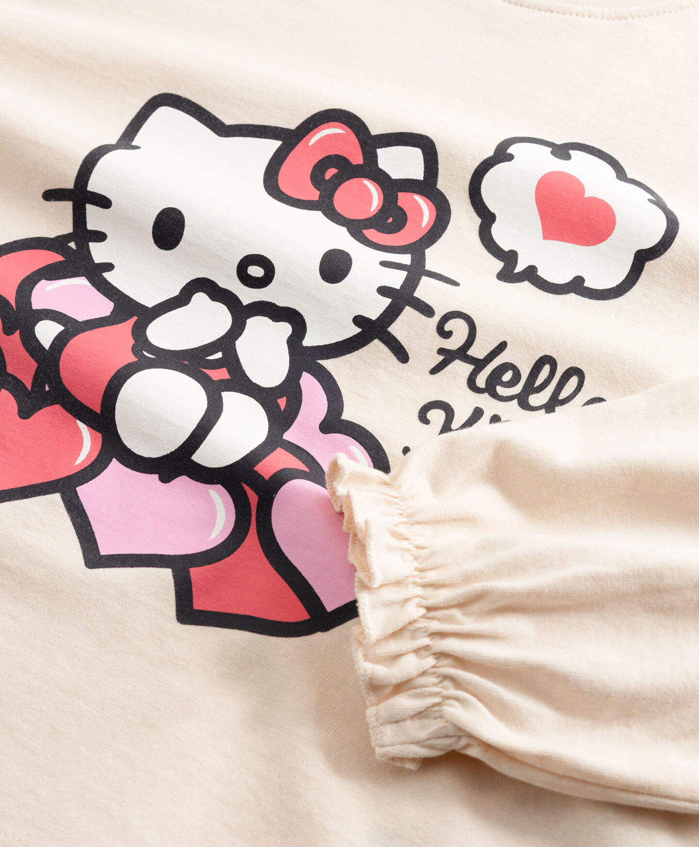 Hello Kitty majica dugih rukava za djevojčice, napravljena od 100% pamuka, pruža toplinu i udobnost. Lijepa aplikacija s motivom omiljenog crtanog lika dodaje boju svakoj kombinaciji. Savršena je za vrtić, školu ili igru u slobodno vrijeme.