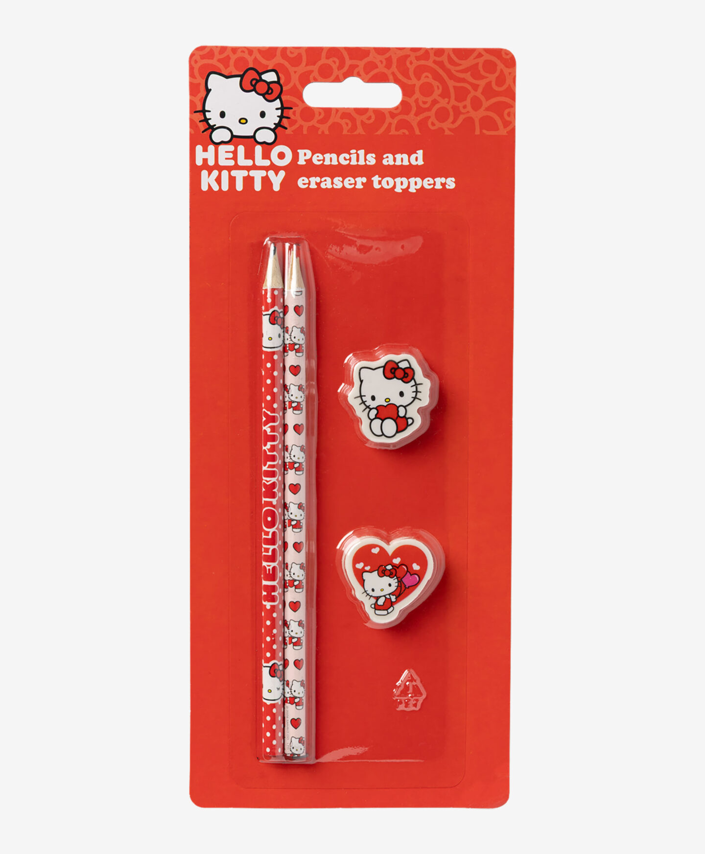 Hello Kitty školski set uključuje 2 olovke i gumicu s motivom poznatog lika. Odličan je za korištenje kod kuće prilikom pisanja zadaće ili crtanja, kao i u školi gdje unosi vedrinu u svaki čas. Idealan je kao poklon.