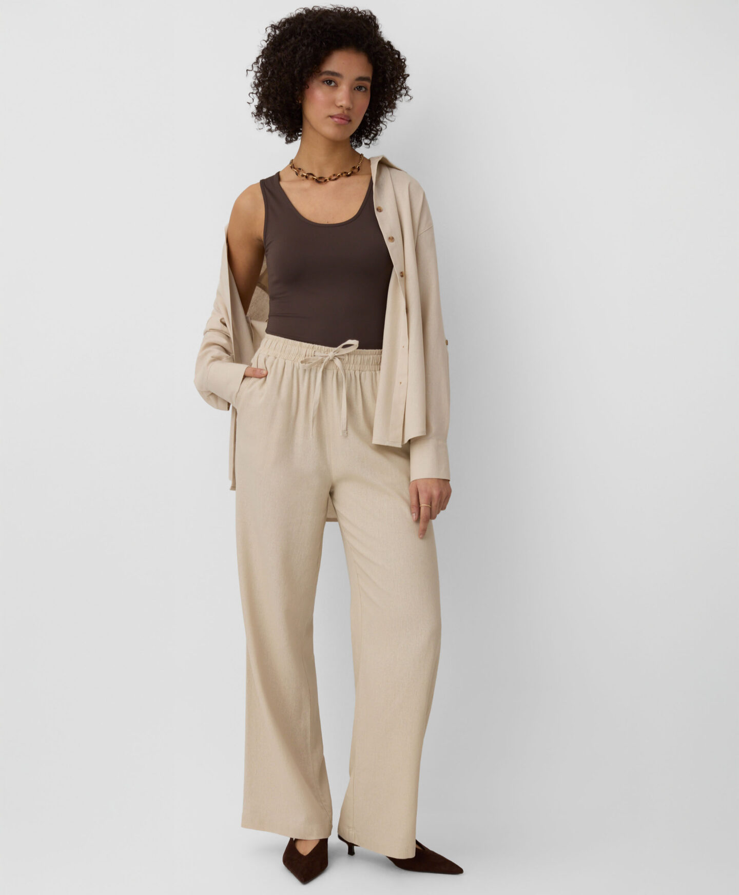 Široke hlače za žene, napravljene od viskoze, predstavljaju sinonim za udobnost. Lagane su, prozračne i mekane na dodir. Njihove prigušene boje omogućavaju lako kombinovanje s majicama, bluzama ili topovima iz vaše garderobe.