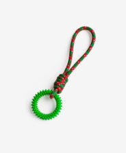 Igračka za pse s prstenom kombinuje pleteno uže i fleksibilni prsten. Prsten podstiče hvatanje i žvakanje, dok je petlja s druge strane idealna za potezanje. Različiti oblici čine igru zanimljivijom i potpuno zaokupljaju psa, bilo kod kuće ili u šetnji.