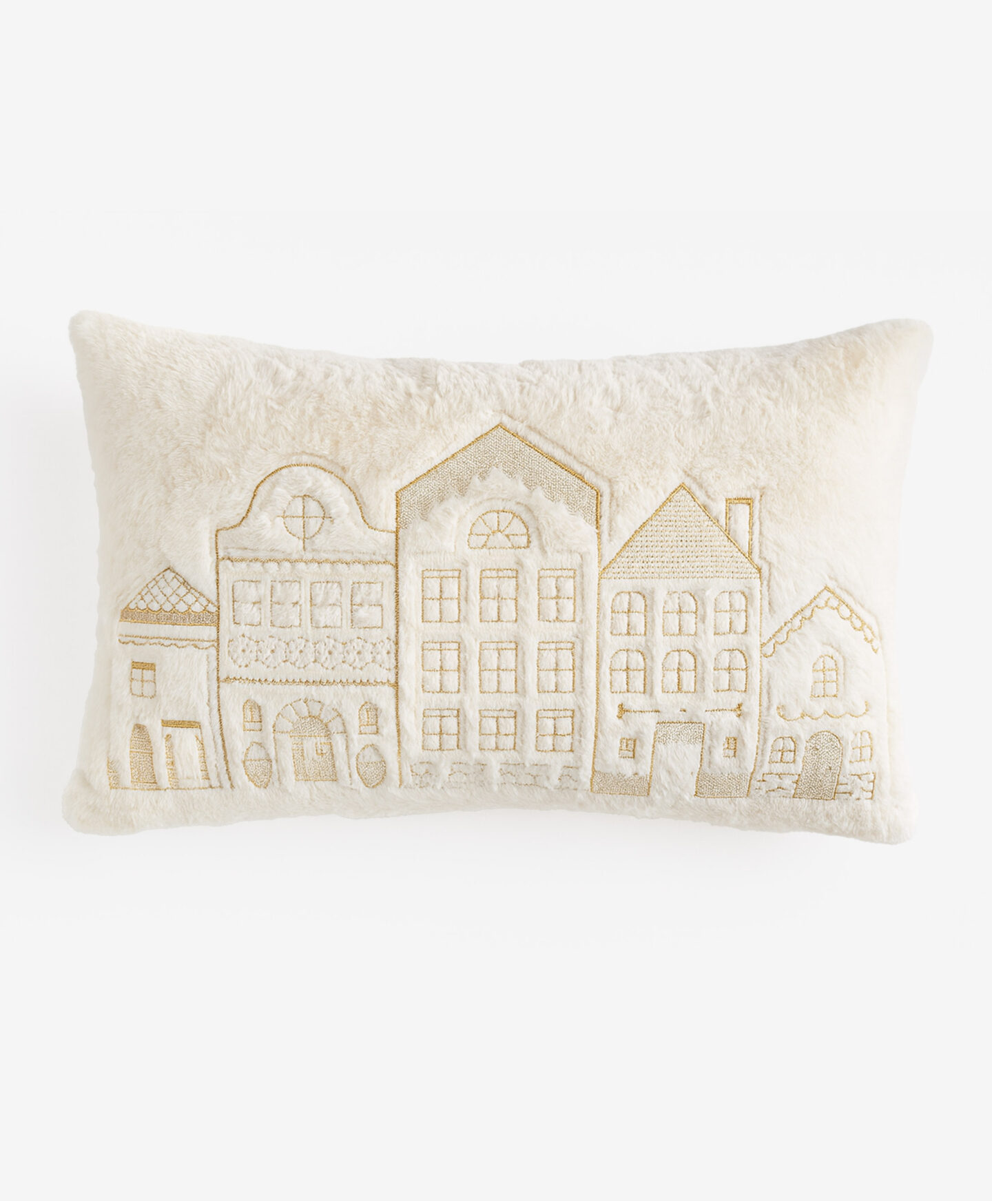 Jastuk s uzorkom kućica prenosi vas pravo na zimsku šetnicu obasjanu svjetlima. Nježan uzorak zgrada sa zlatnim akcentima donosi toplinu i šarm te transformiše sofu ili krevet. Kombinuje funkcionalnost i estetiku, čineći prostor udobnijim i prijatnijim.