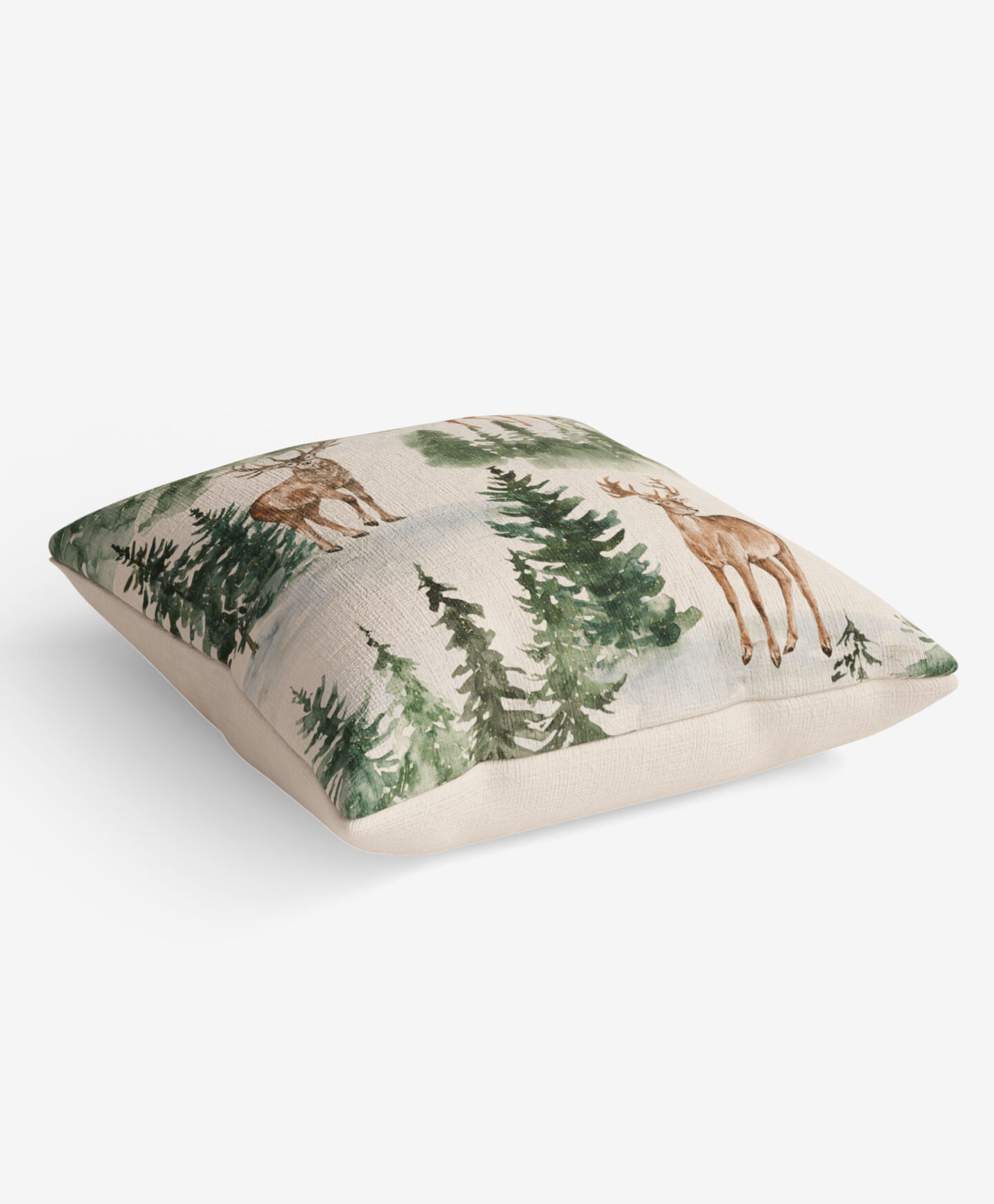 Ukrasni jastuk s motivom zimske šume, jelki i jelena oduševljava prelijepim uzorkom. Odličan je dodatak koji istovremeno služi kao ukrasni element i udobna potpora za opuštanje.