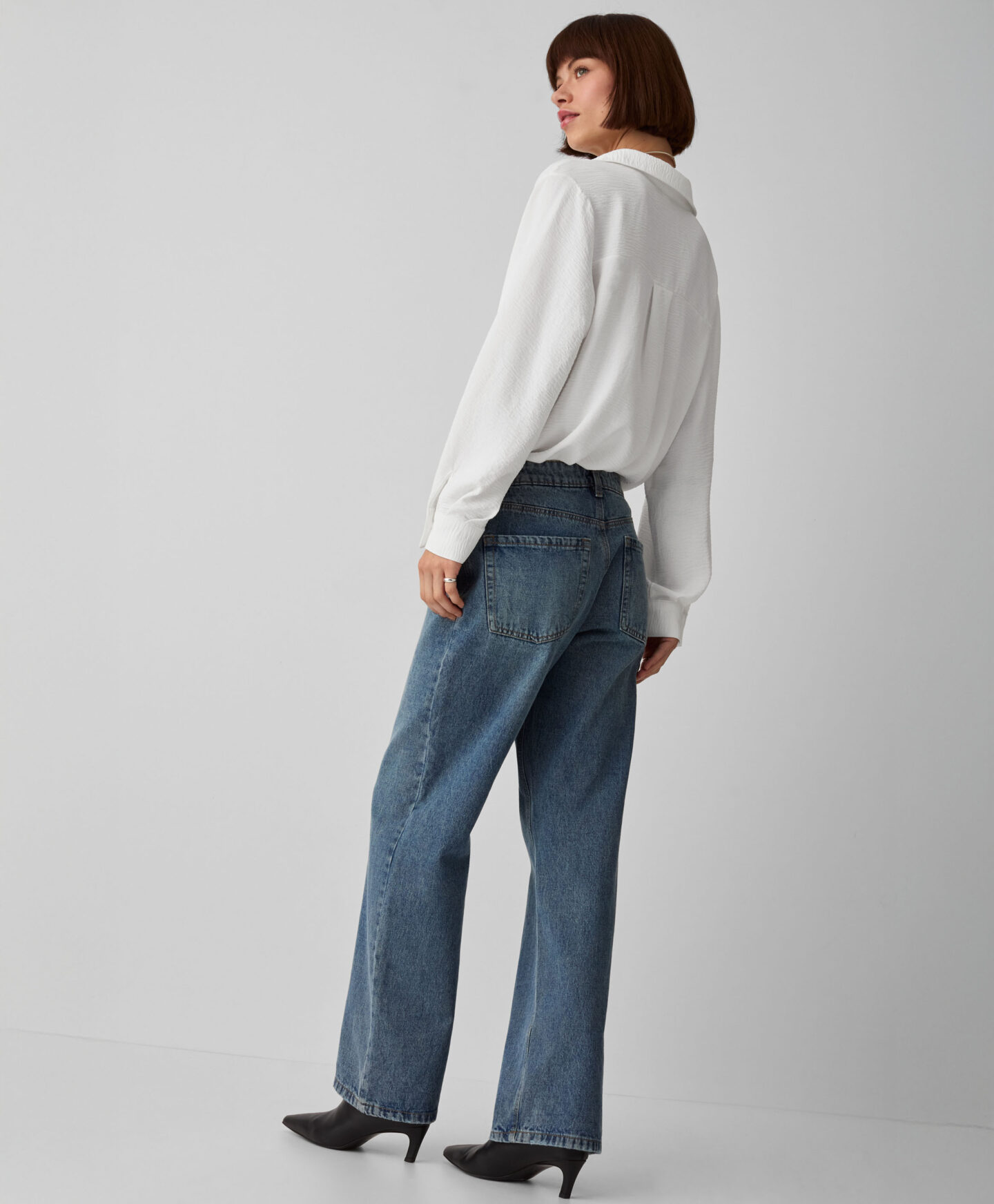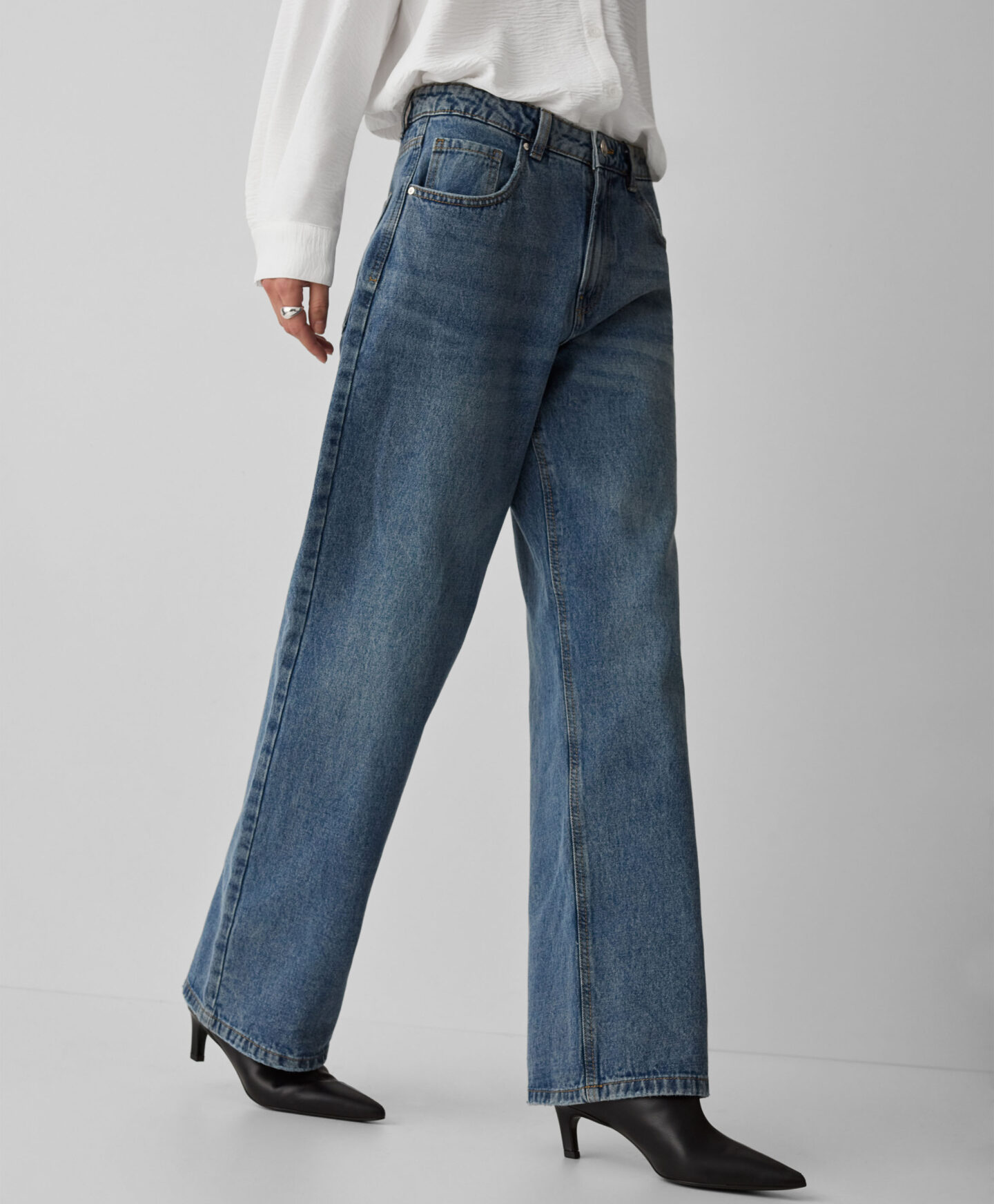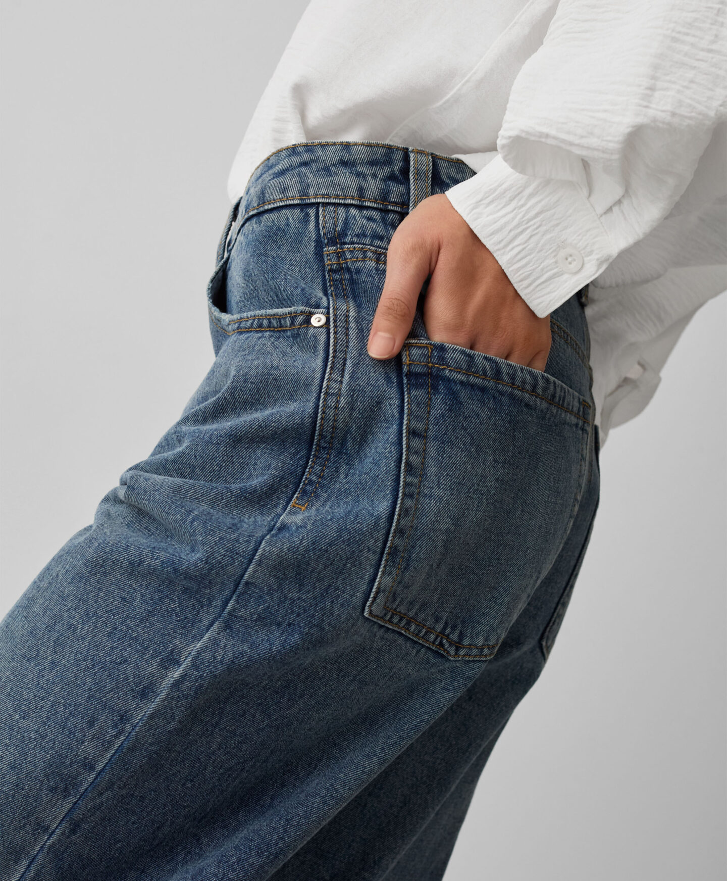 Jeans sa širokim nogavicama za žene, napravljen od 100% pamuka, pravi je modni hit ove sezone. Odlično izgleda uz uske majice ili u opuštenijim, oversize kombinacijama. Klasična boja omogućava lako kombinovanje s različitim komadima garderobe. Svestran je, udoban i jednostavan za održavanje.