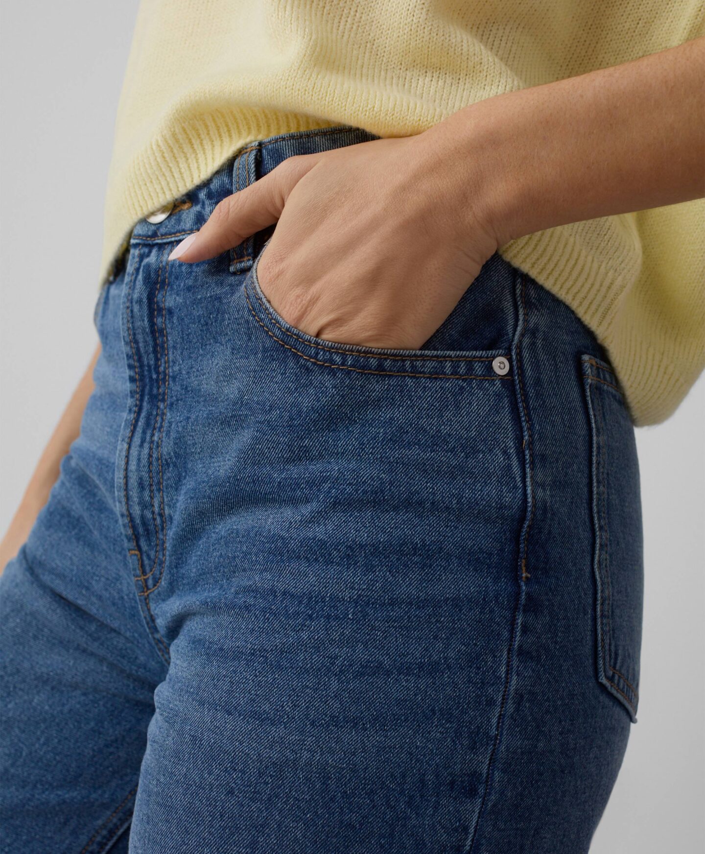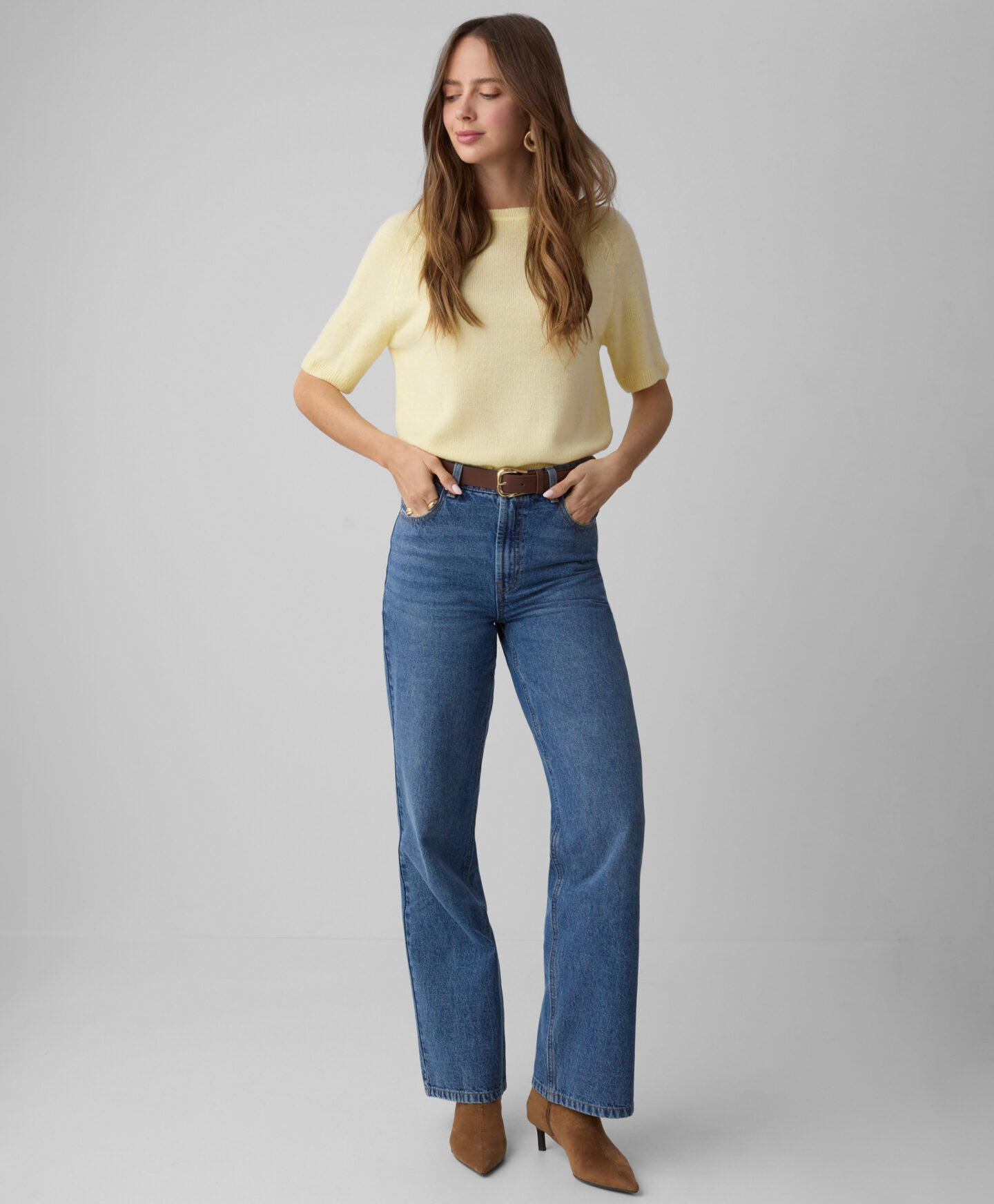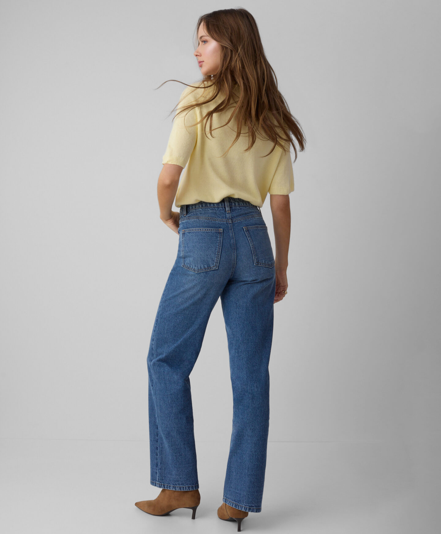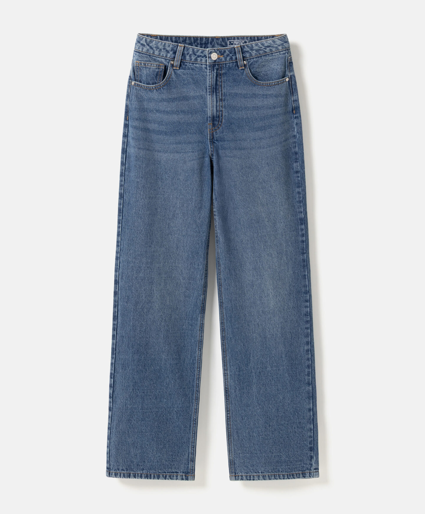 Jeans sa širokim nogavicama za žene, napravljen od 100% pamuka, osnovni je komad garderobe bez obzira na sezonu. Odlično izgleda uz ležernu majicu ili elegantnu bijelu košulju. Idealan je za posao, sastanak ili izlazak s prijateljicama. Klasična plava boja pruža potpunu slobodu stilizovanja.