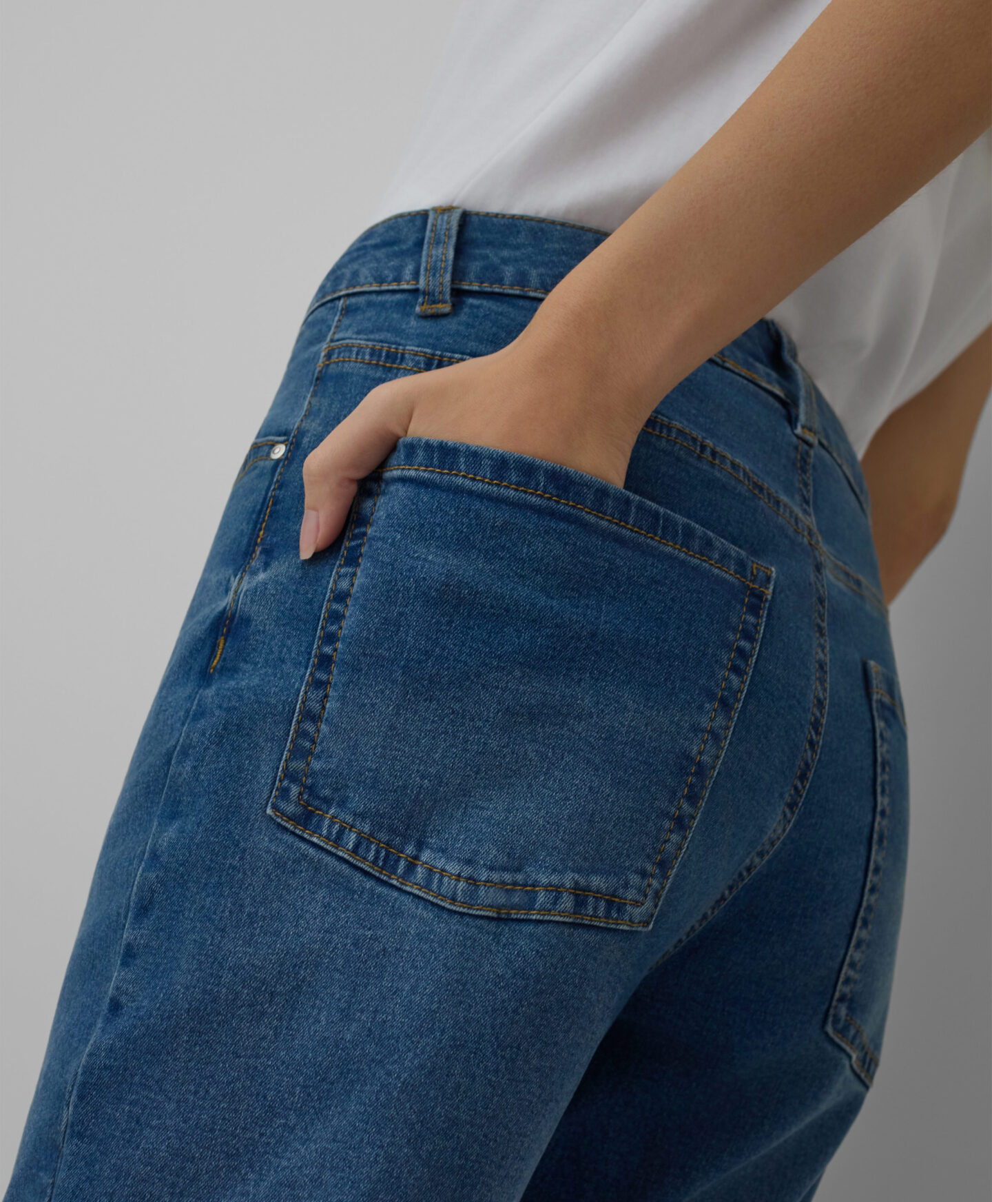 Mom-fit jeans za žene bezvremenski je klasik koji spaja retro stil s modernim detaljima. Visoki struk naglašava liniju tijela i pruža udobnost, dok blago šire nogavice daju ležeran izgled i omogućavaju slobodu kretanja.