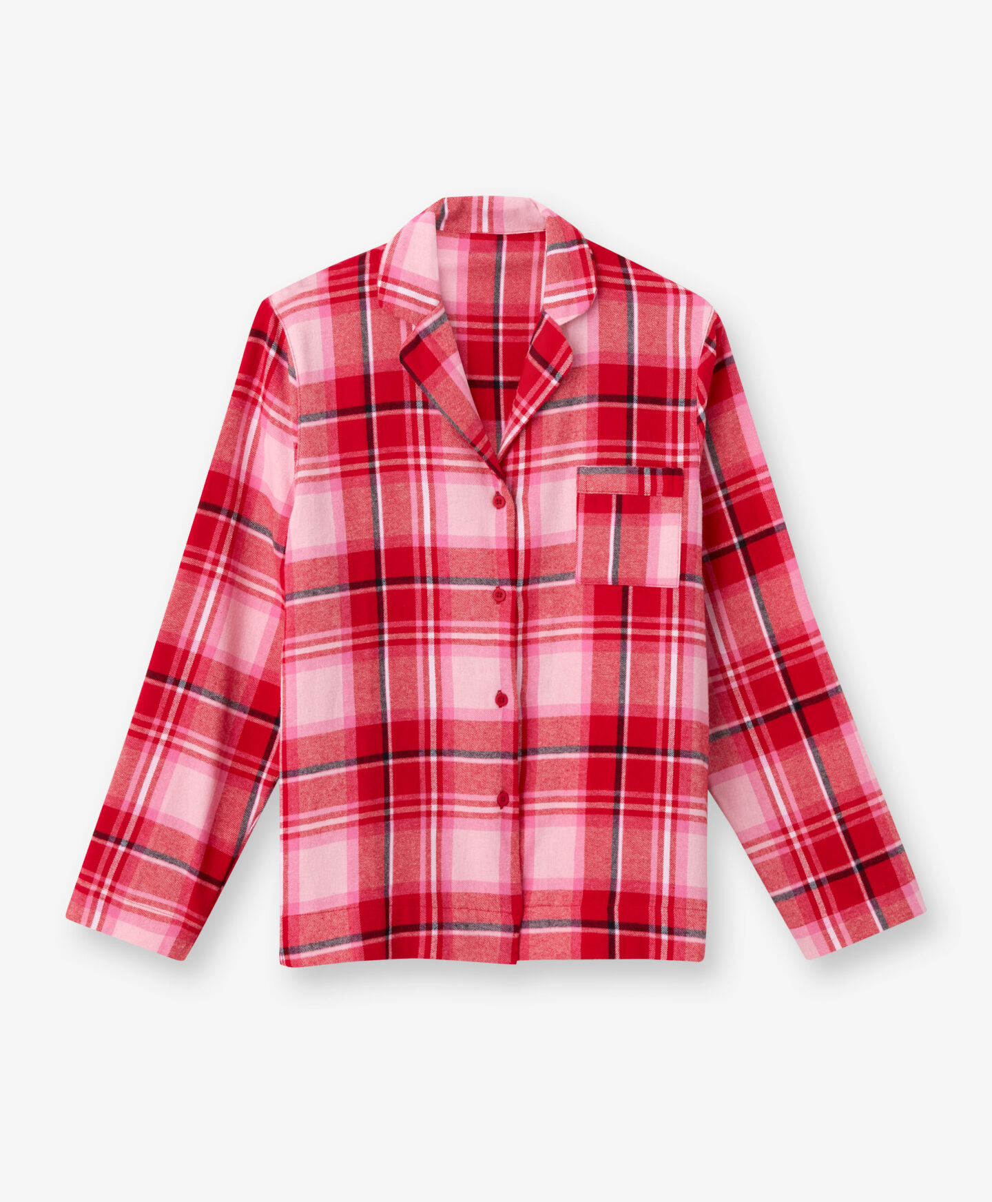 Karirana pidžama za žene, napravljena od 100% pamuka, topla je, mekana na dodir i nježna prema koži. Savršena je za udobne zimske večeri kod kuće i osigurava miran san. Klasičan karirani uzorak i praznične boje čine ovu pidžamu odličnom idejom za poklon.