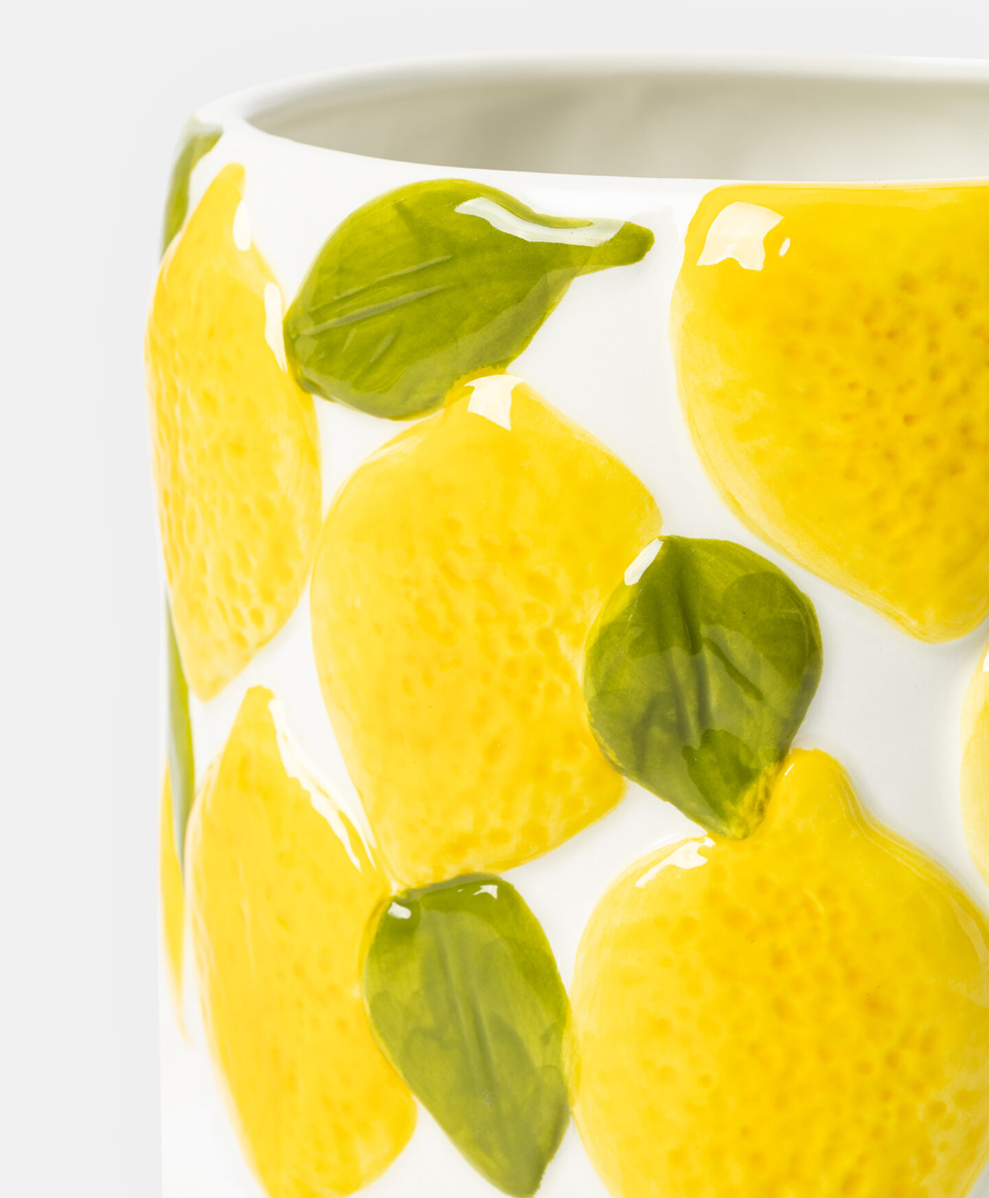 Keramička saksija s reljefnim uzorkom limuna pravi je ukras svakog prostora. Idealna je za male biljke, sukulente, začine ili cvijeće, bilo na prozorskoj klupici, polici ili stolu. Lijep dizajn inspirisan mediteranom uklapa se u svaki interijer. Saksija je izdržljiva i jednostavna za održavanje.