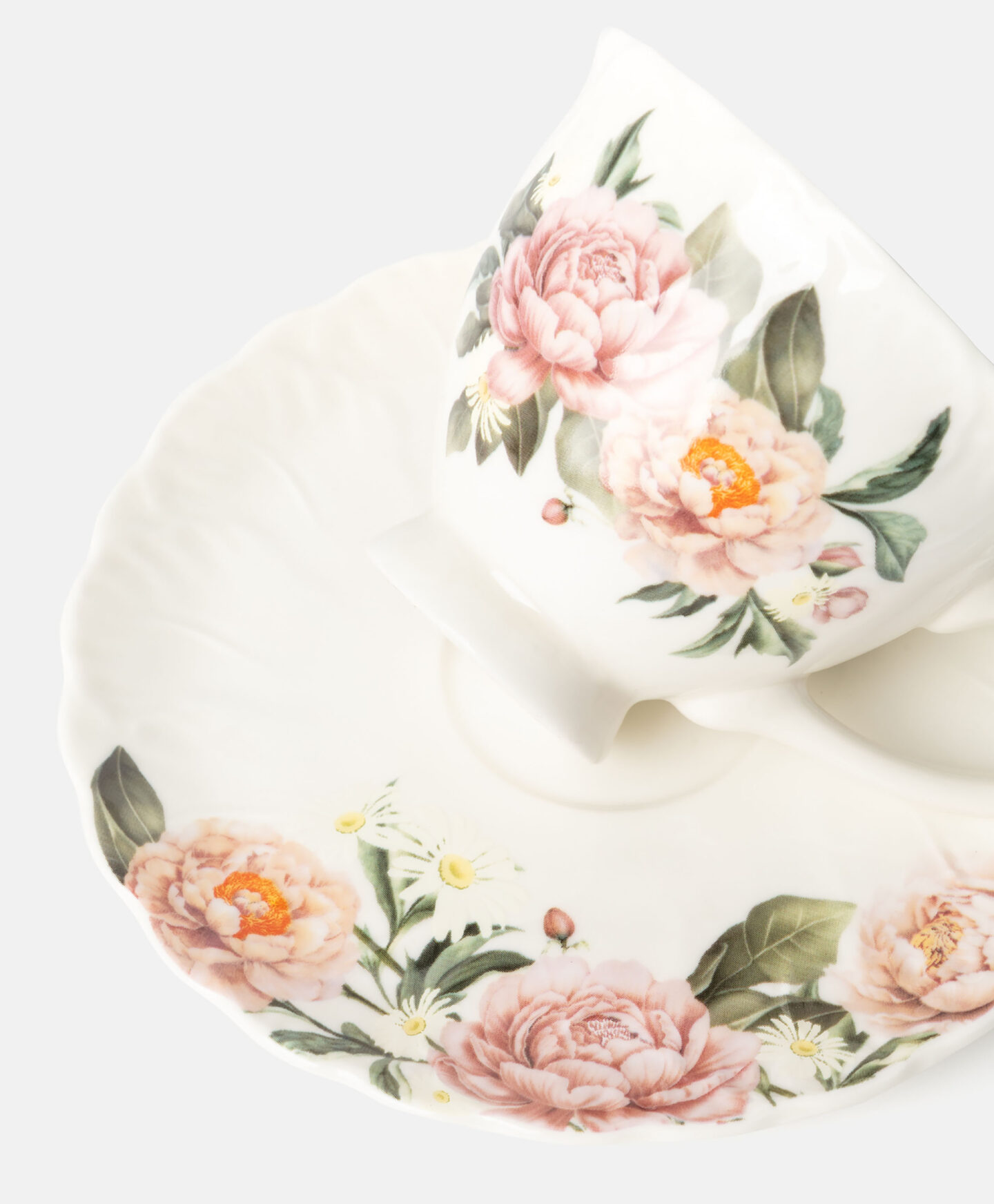 Keramička šolja s tanjirićem i cvjetnim uzorkom napravljena je od izdržljivog New Bone China porcelana. Odličan je izbor za svakodnevnu upotrebu i posebne prilike. Proljetni dizajn dodat će šarm svakom trenutku uz omiljeni napitak. Šolja je odlična za serviranje aromatične kafe, čaja s limunom ili tople čokolade. U ponudi je dostupno i odgovarajuće posuđe u istom uzorku.