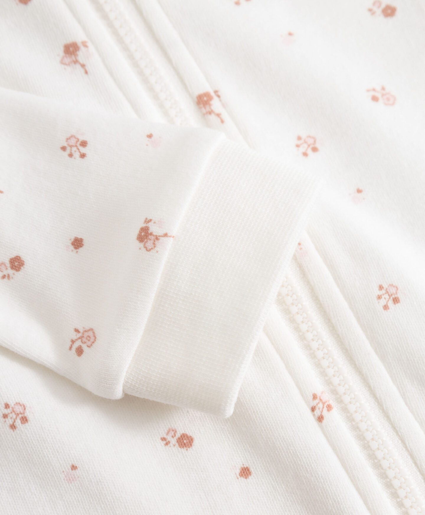Kombinezon s uzorkom za bebe-djevojčice, napravljen od 100 % organskog pamuka, unosi šarm u svaki zajednički trenutak. Mekani materijal nježno obavija bebinu kožu i omogućuje udobno kretanje. Rajsfešlus cijelom dužinom olakšava presvlačenje i mijenjanje pelena.