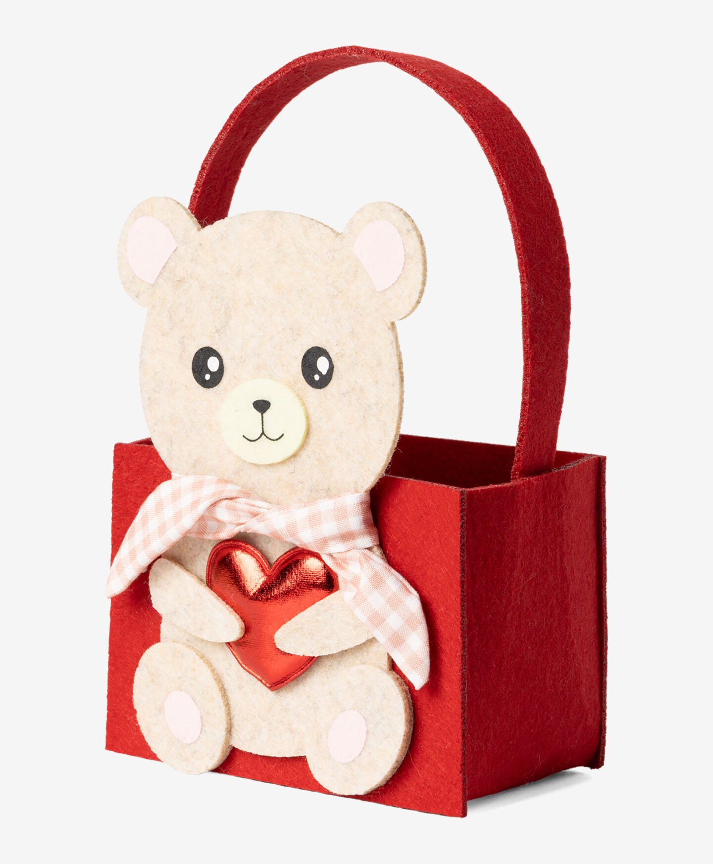 Korpa od filca s uzorkom medvjedića savršen je način da izmamite osmijeh i naglasite posebnost poklona. Predstavlja šarmantno pakovanje za poklon za Dan zaljubljenih, poput čokolada, mirisne svijeće, nakita ili druge romantične sitnice. U ponudi su dostupna tri dizajna.