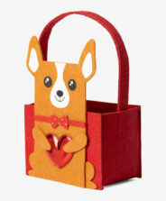 Korpa od filca s uzorkom psa savršen je način da izmamite osmijeh i naglasite posebnost poklona. Predstavlja šarmantno pakovanje za poklon za Dan zaljubljenih, poput čokolada, mirisne svijeće, nakita ili druge romantične sitnice. U ponudi su dostupna tri dizajna.