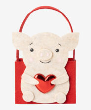 Korpa od filca s uzorkom svinje savršen je način da izmamite osmijeh i naglasite posebnost poklona. Predstavlja šarmantno pakovanje za poklon za Dan zaljubljenih, poput čokolada, mirisne svijeće, nakita ili druge romantične sitnice. U ponudi su dostupna tri dizajna.