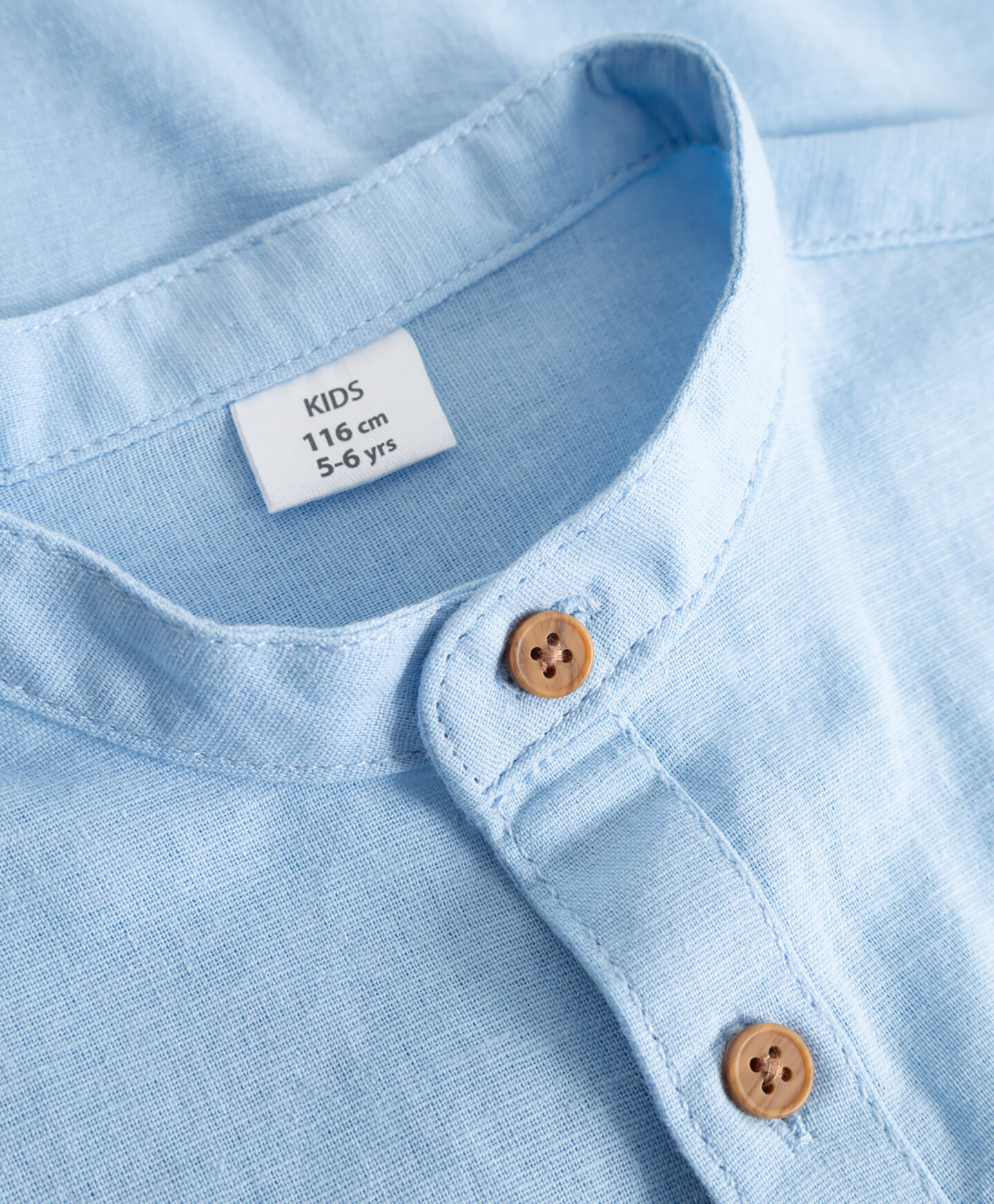 Plava košulja s dodatkom lana za dječake odlična je za porodična okupljanja. Lan osigurava dodatnu prozračnost. Smeđa dugmad i mala ruska kragna kontrastiraju plavoj boji košulje, dajući joj formalniji i moderniji izgled. Dugmad na rukavima omogućavaju lako zavrtanje i pričvršćivanje rukava, pa se izgled može prebaciti u ležerniji stil. Košulja se odlično kombinuje i s jeansom i s elegantnijim hlačama.