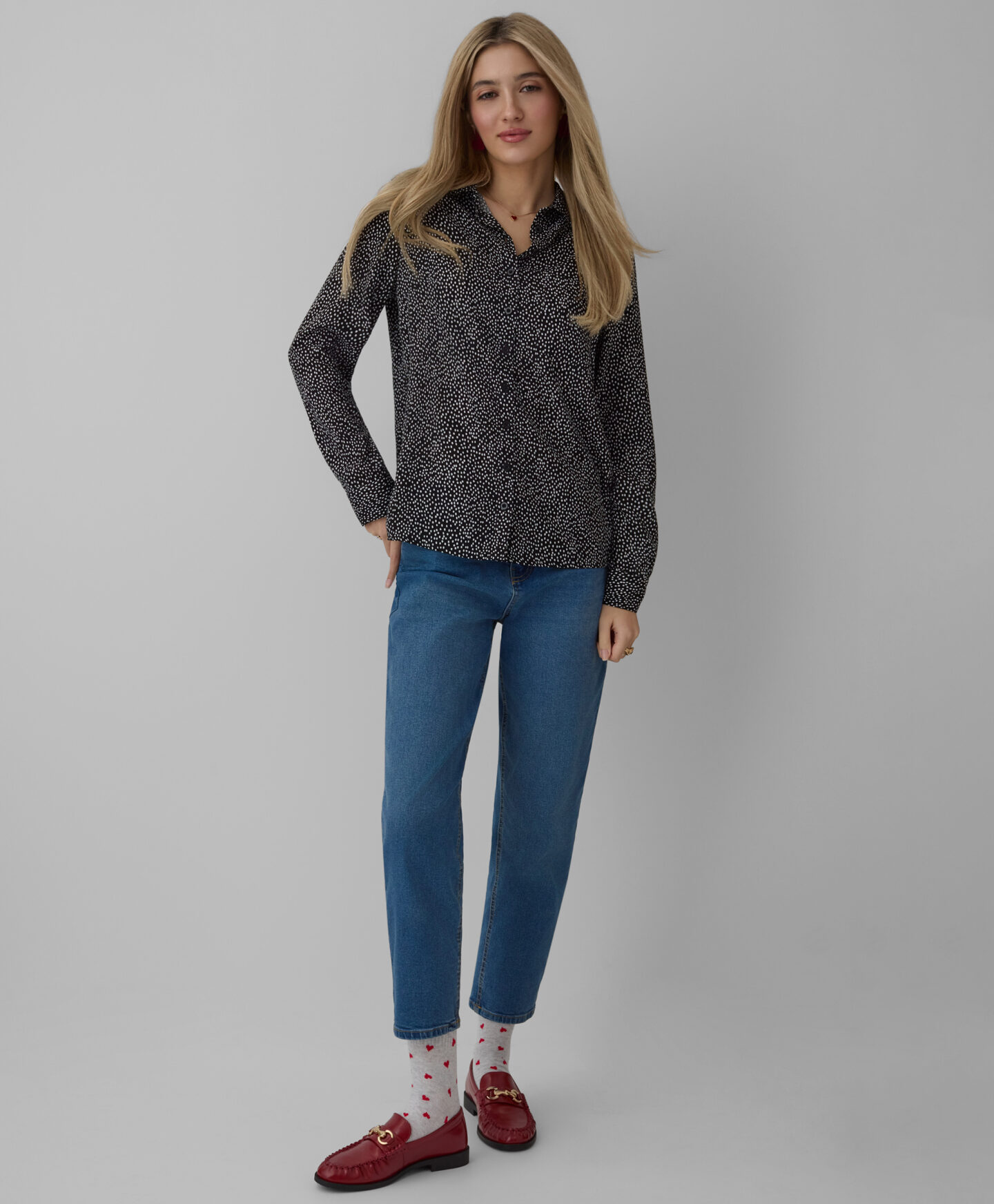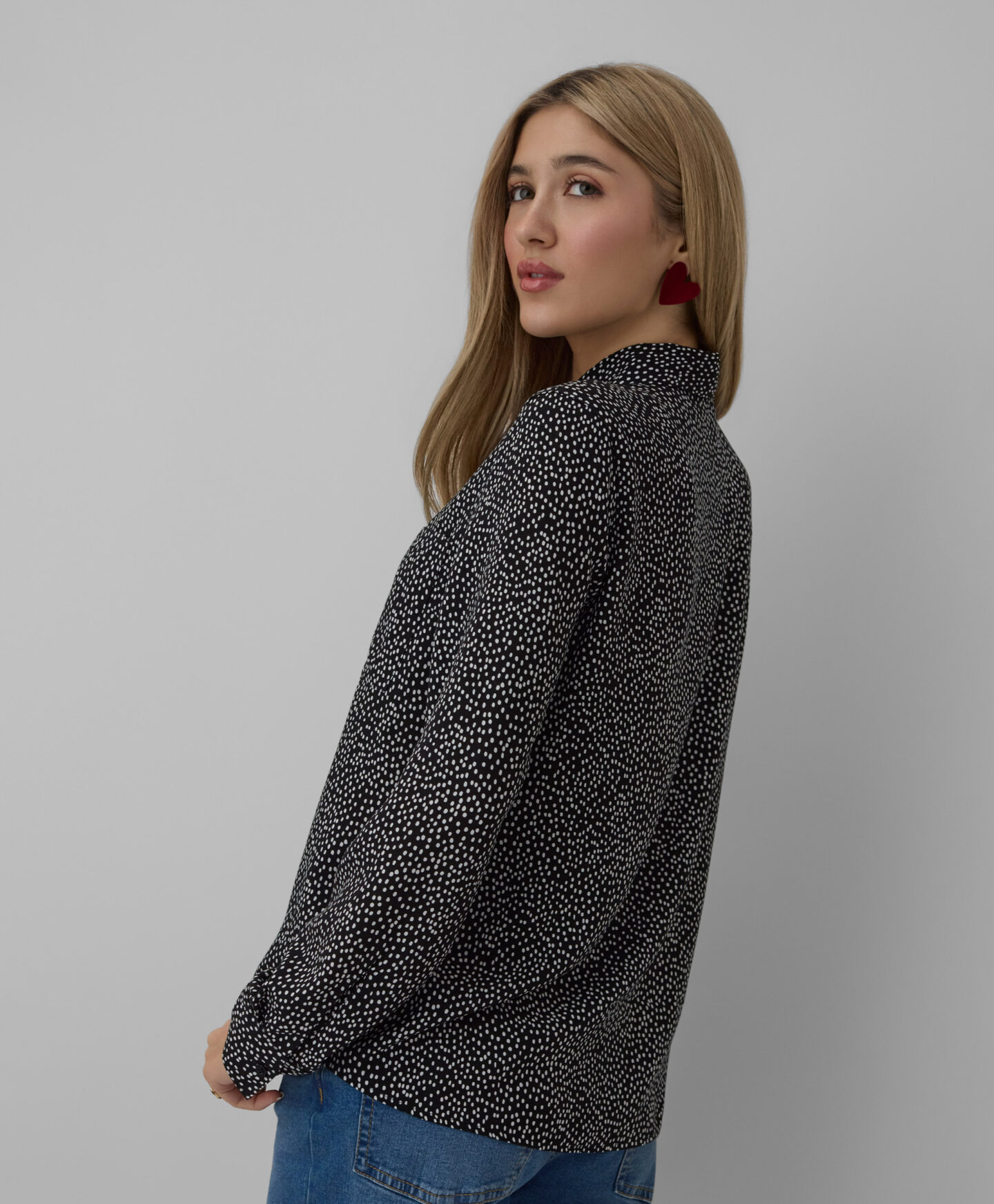 Košulja s uzorkom za žene, napravljena od 100% viskoze, kombinuje eleganciju i udobnost. Napravljena od mekane i lagane viskoze, pruža izuzetnu udobnost pri nošenju, što je čini savršenim izborom za svaku priliku. Tkanina s uzorkom daje joj jedinstven karakter, omogućavajući svakoj ženi da izrazi svoj individualni stil.