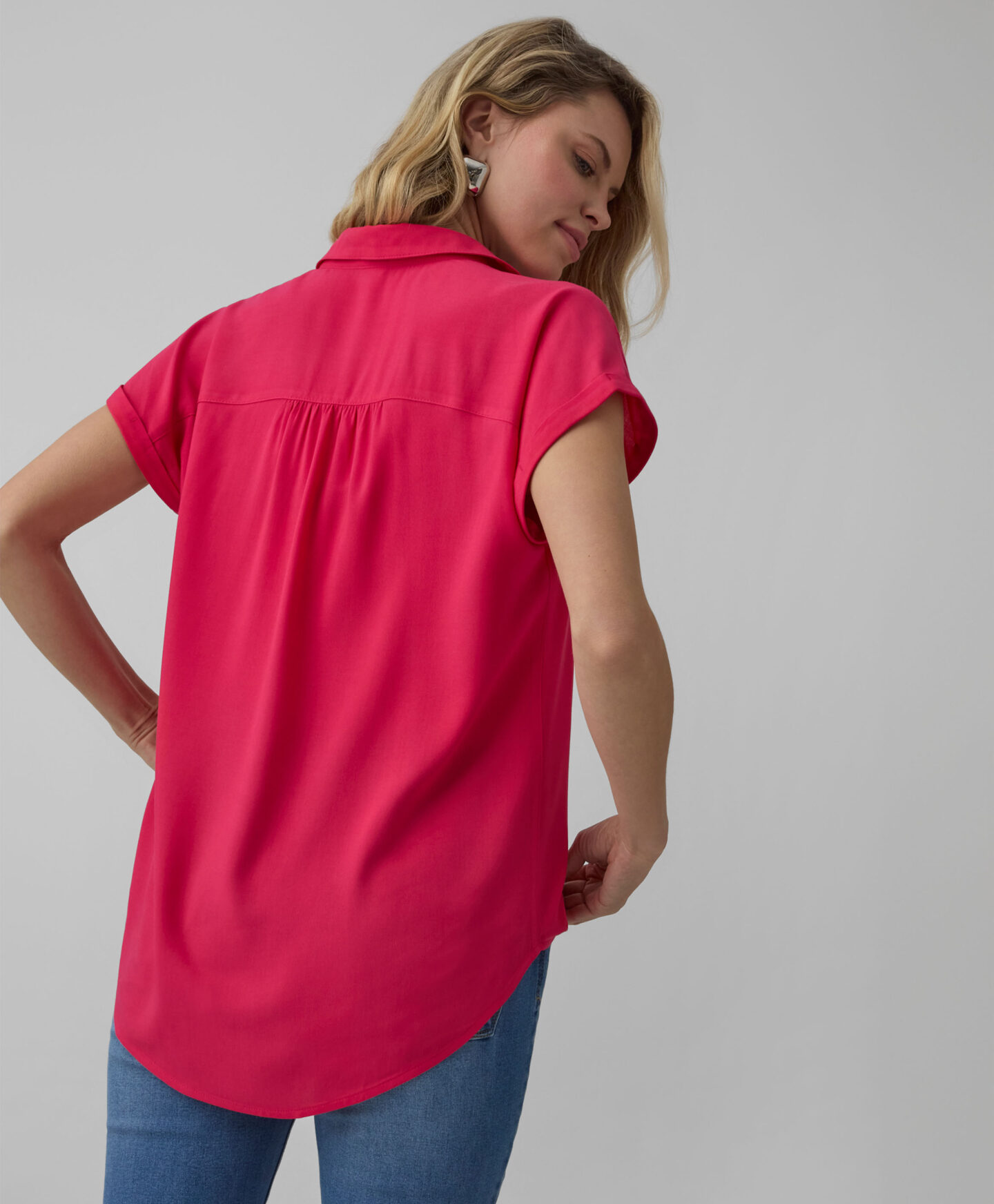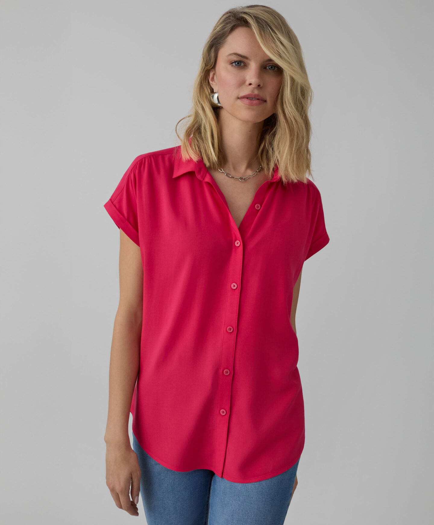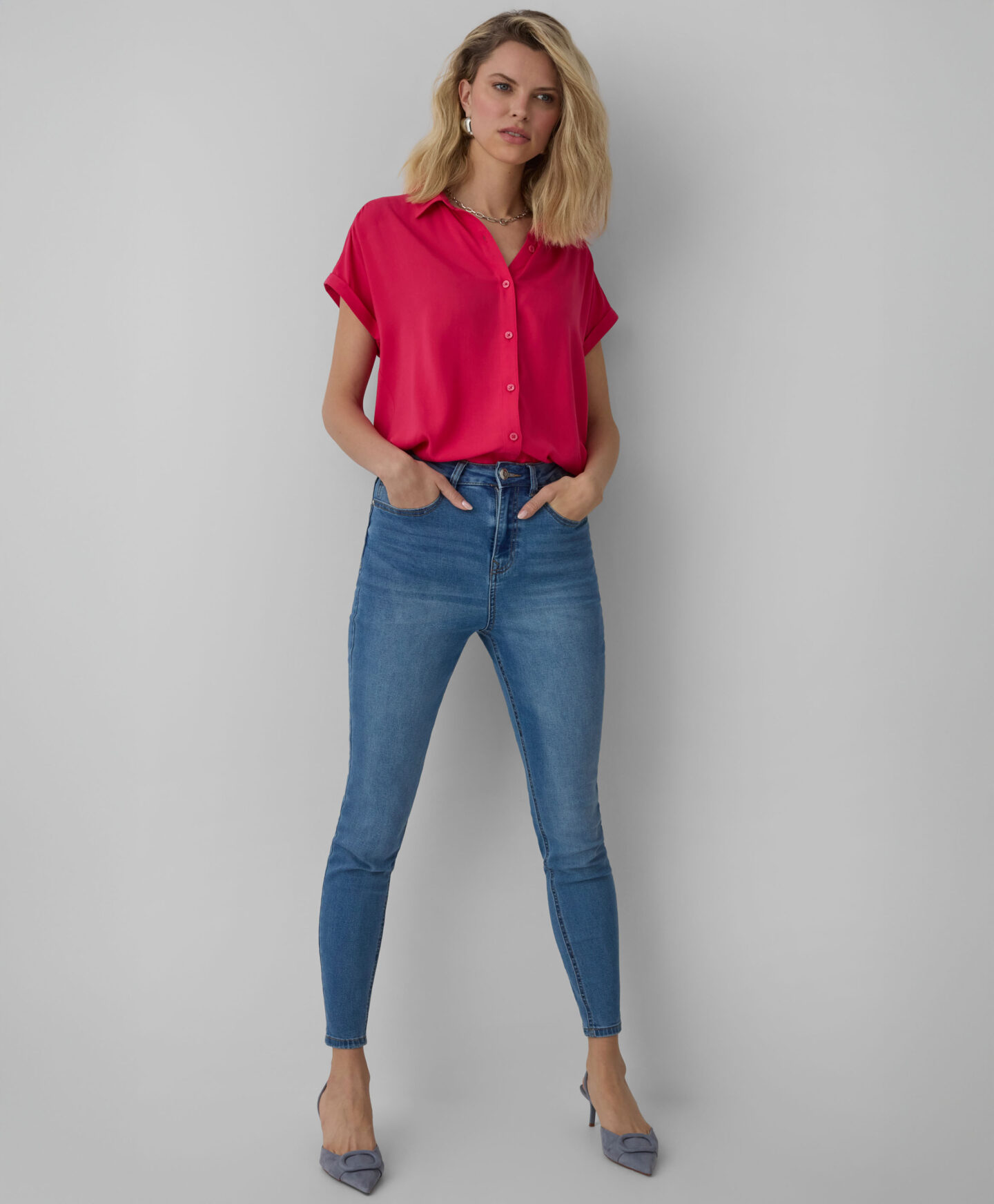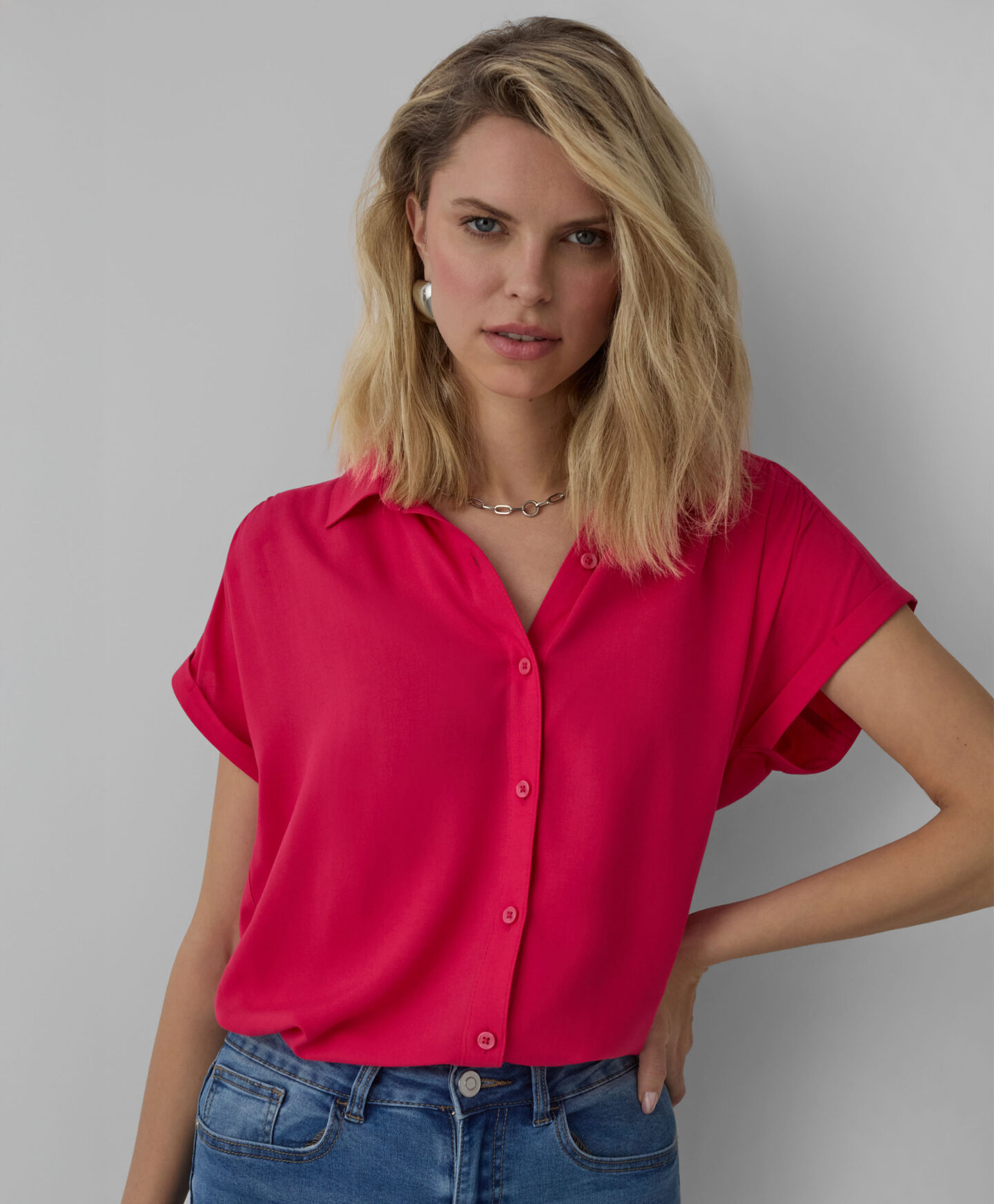 Košulja za žene, napravljena od 100% viskoze, ističe se bojom koja oživljava svaki outfit. Ima udoban kroj, kopčanje dugmadima i kratke rukave. Lagana je, lepršava i idealna za slojevite kombinacije. Neizostavan je komad u svakoj garderobi.