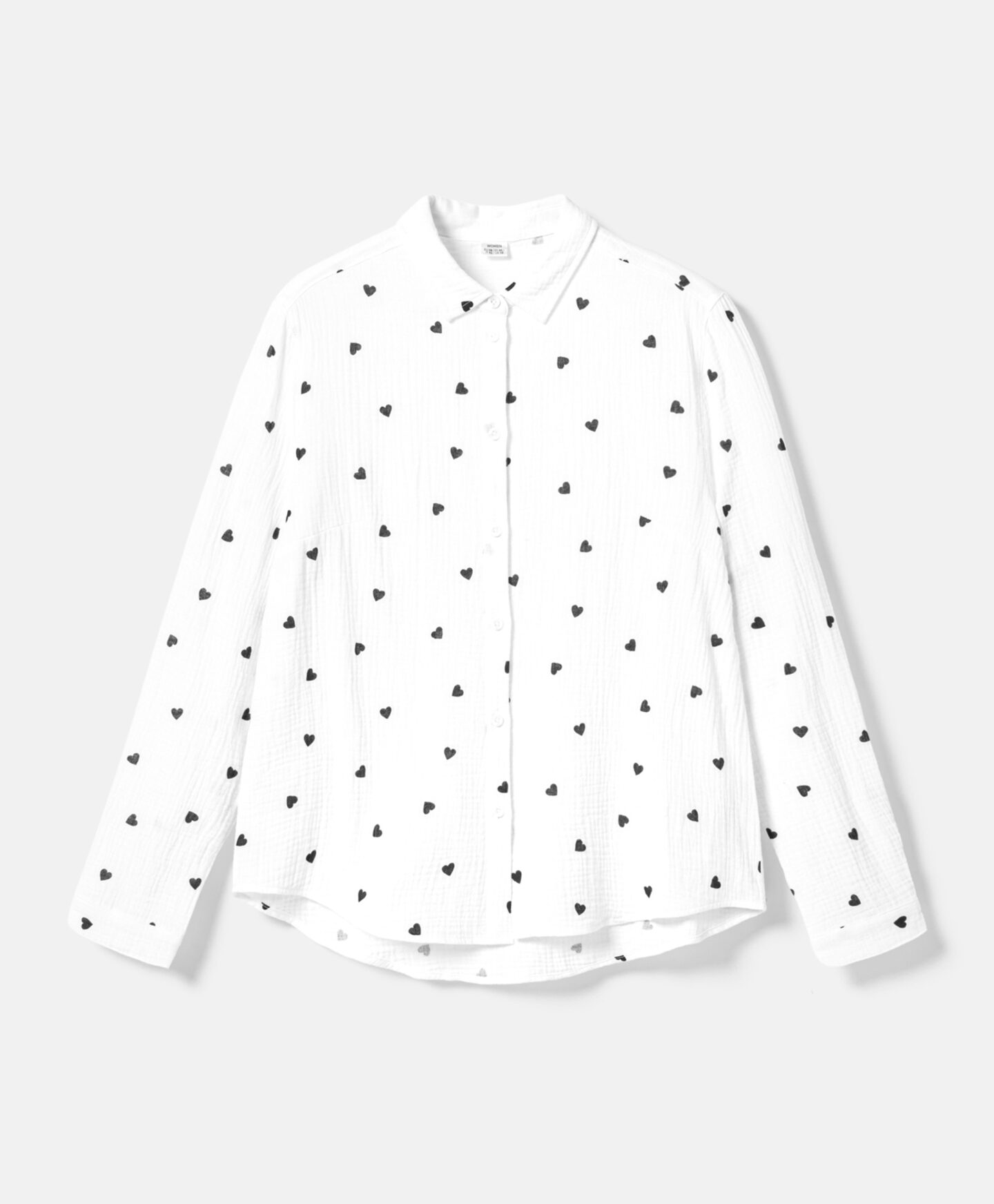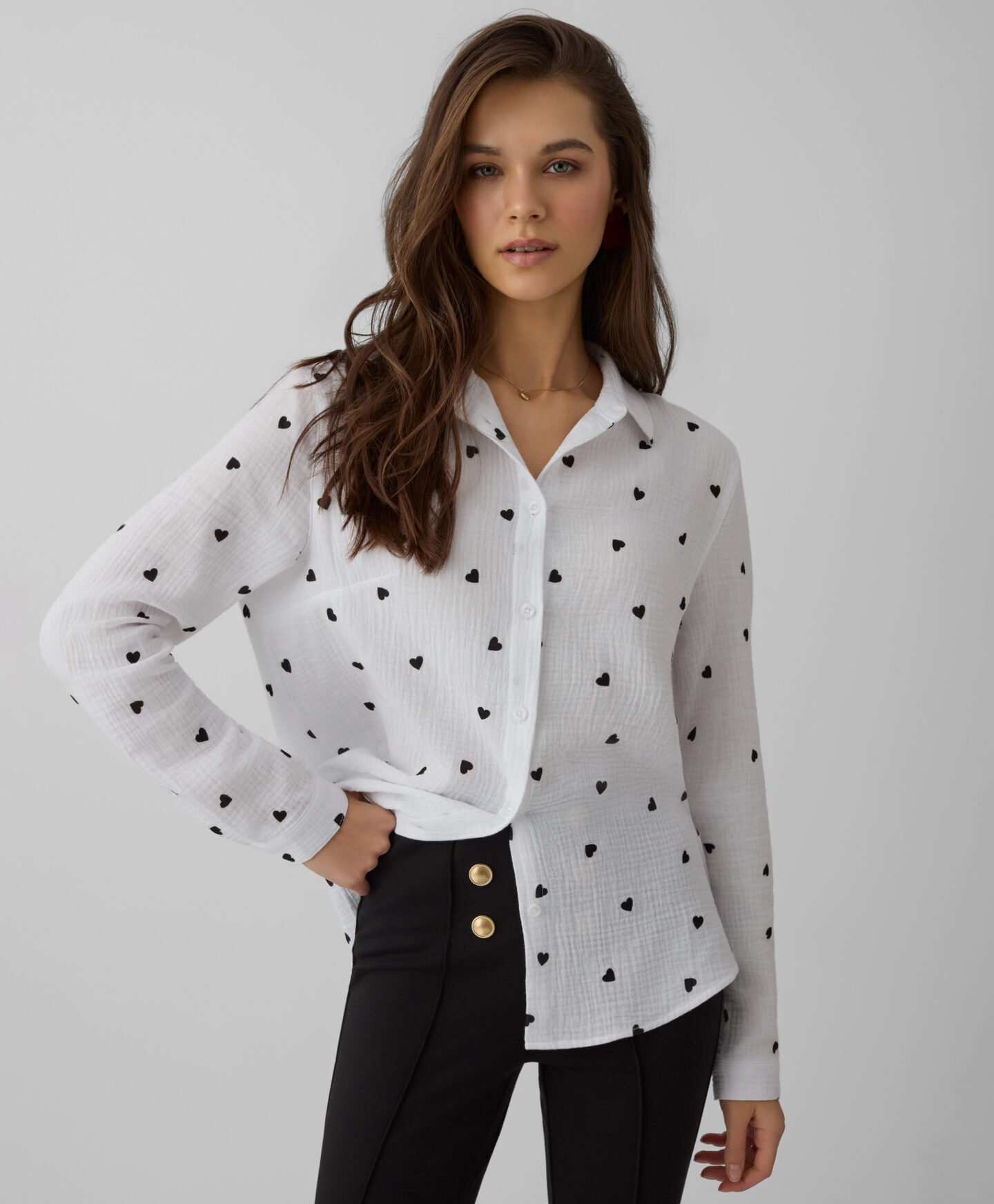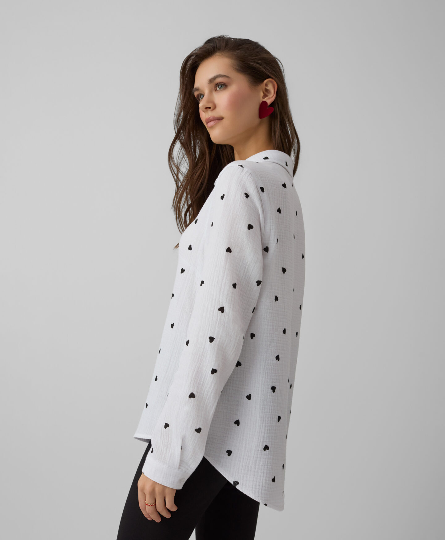 Košulja s uzorkom za žene, napravljena od 100% pamuka, osvojit će ljubiteljice klasičnog stila. Pamučni muslin je lagana, prozračna i izuzetno mekana tkanina, savršena za ležernije i elegantnije kombinacije.
