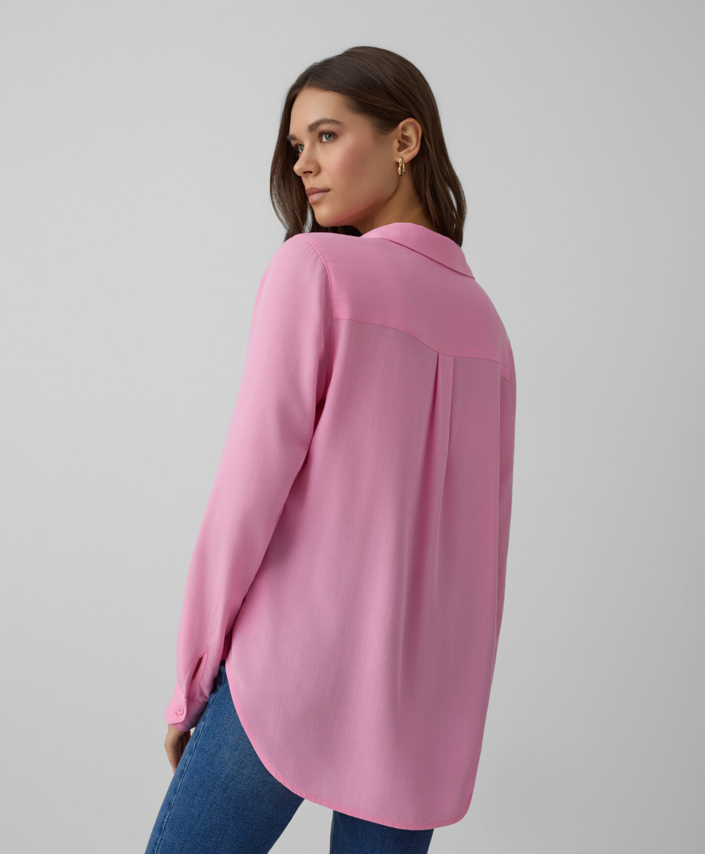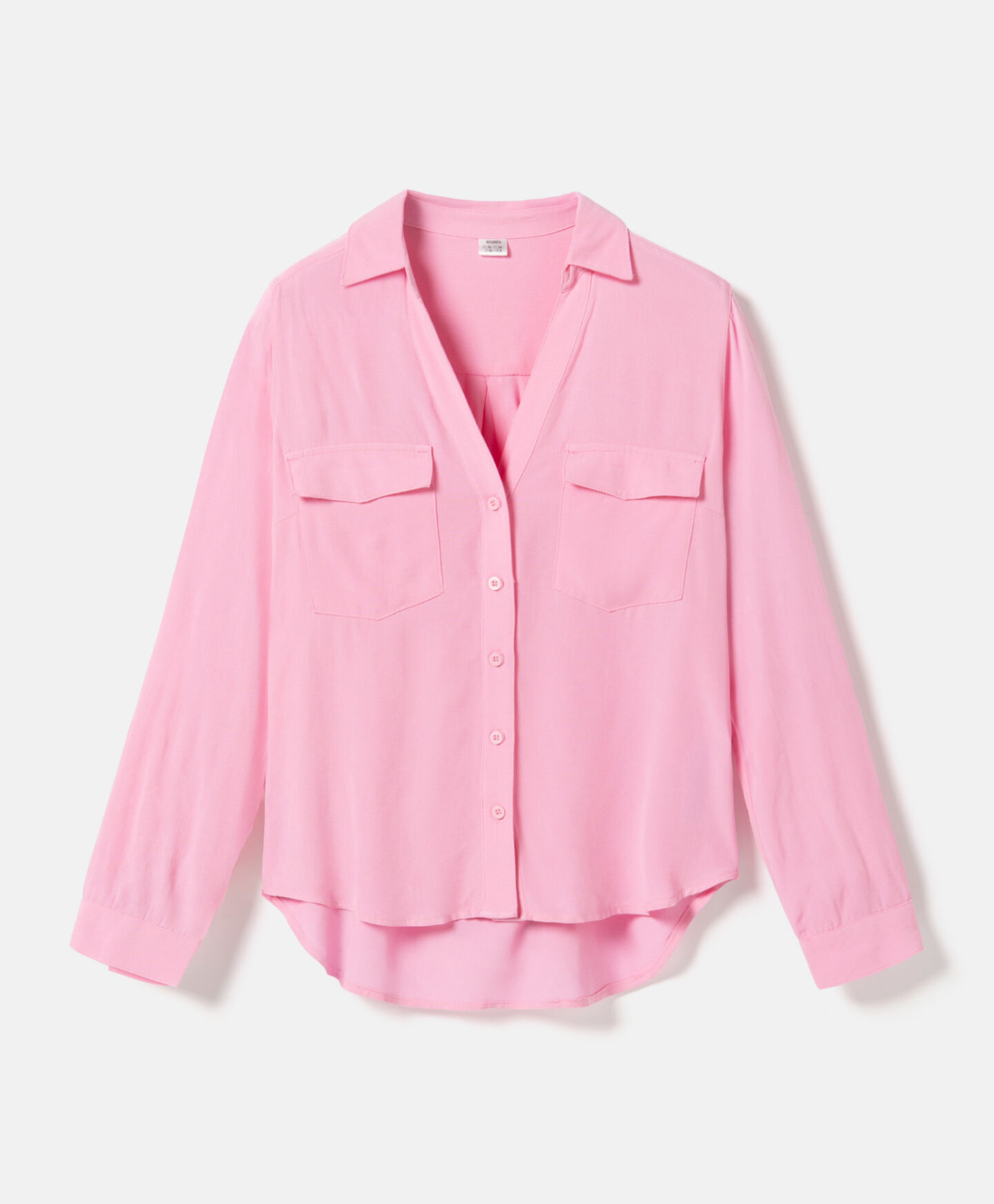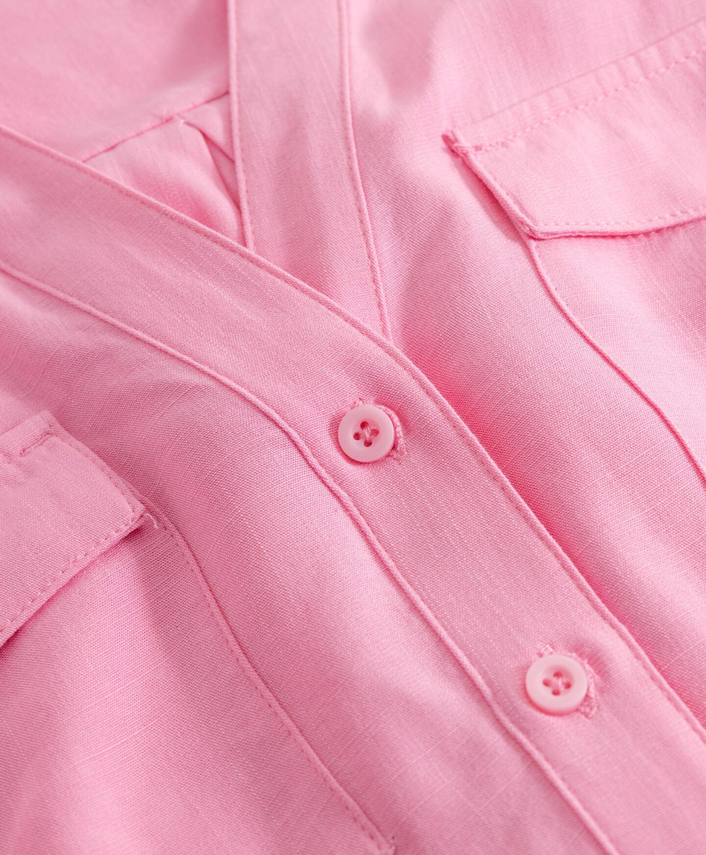 Roza košulja s džepovima za žene, napravljena od 100% viskoze, savršena je za svakodnevno nošenje i posebne prilike. Prozračna je, mekana i lijepo pristaje uz tijelo, dok prednji džepovi daju poseban šarm.