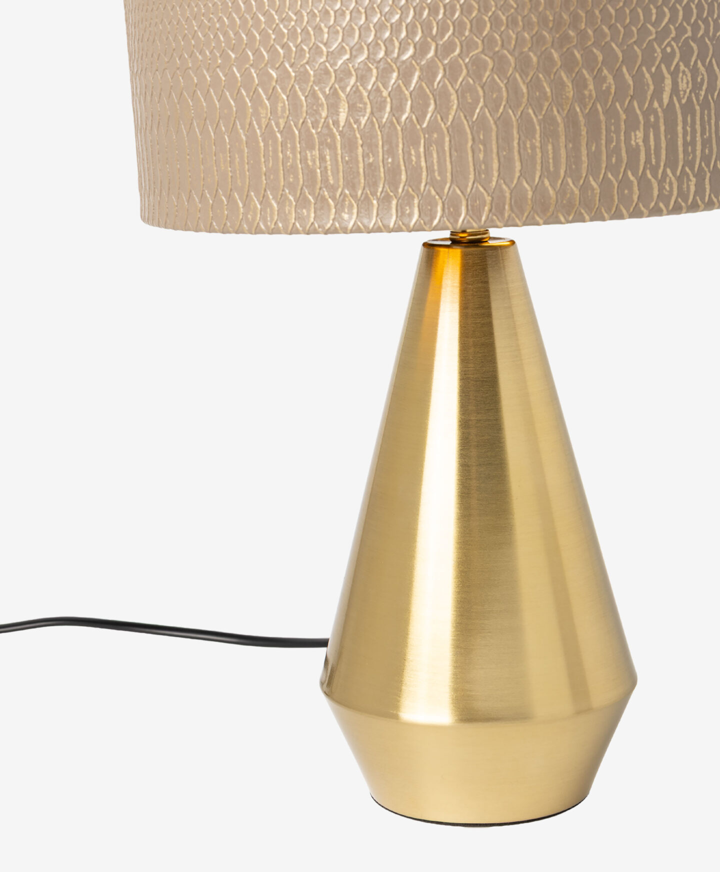 Lampa sa zlatnim postoljem oličenje je elegancije i modernog dizajna. Zlatno postolje dodaje luksuzan akcent, dok smeđi abažur unosi suptilnu, toplu atmosferu u prostor. Savršena je za dnevni boravak, spavaću sobu ili kancelariju i lako se uklapa u različite stilove uređenja, stvarajući skladnu cjelinu.