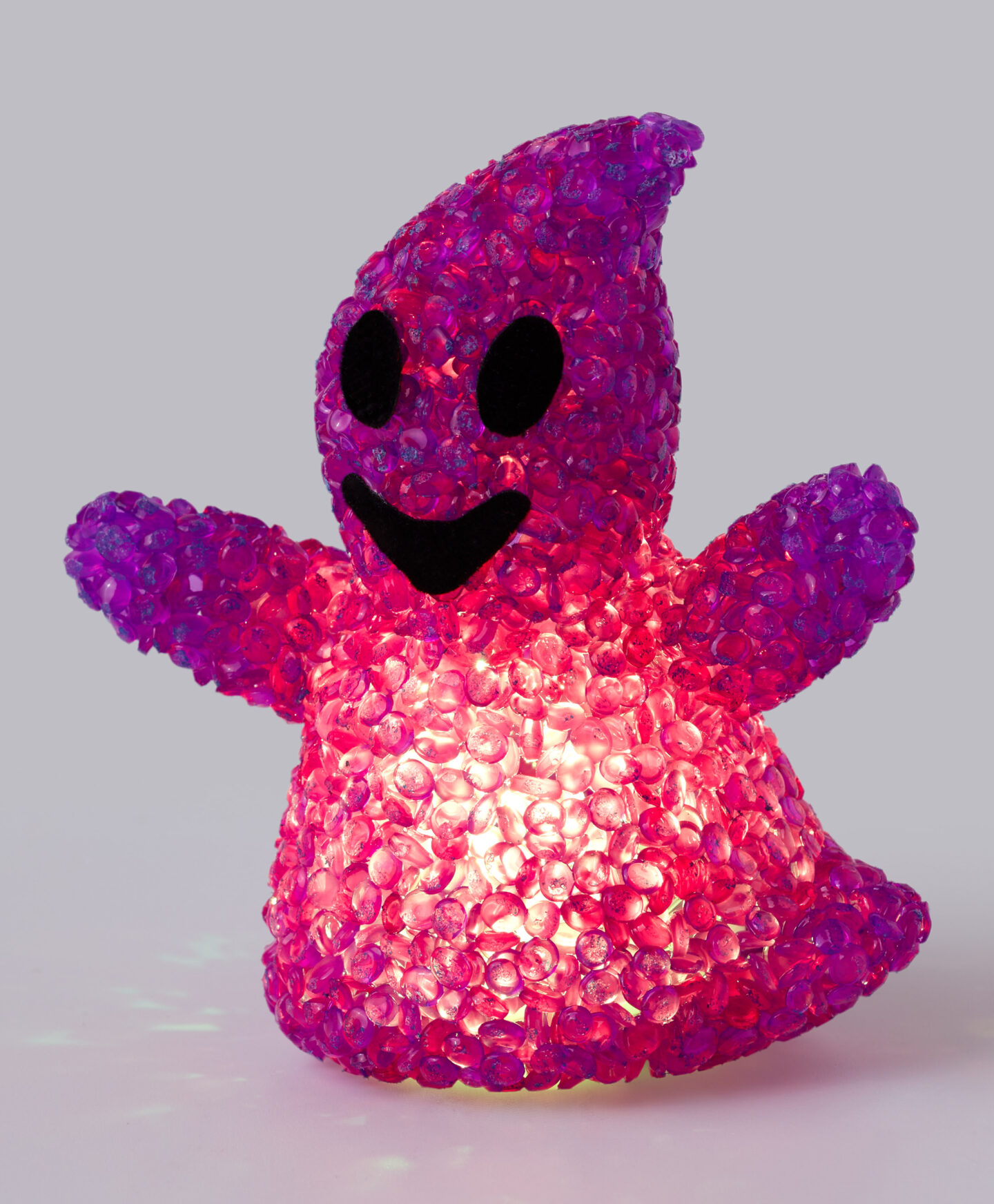 Ljubičasti mali LED duh prekriven je kristalima, što ga čini vrlo elegantnim Halloween ukrasom. Mala veličina i suptilni dizajn čine ga savršenim za radni sto, komodu ili policu. Sigurno će oduševiti sve članove domaćinstva. U ponudi su dostupni razni oblici.