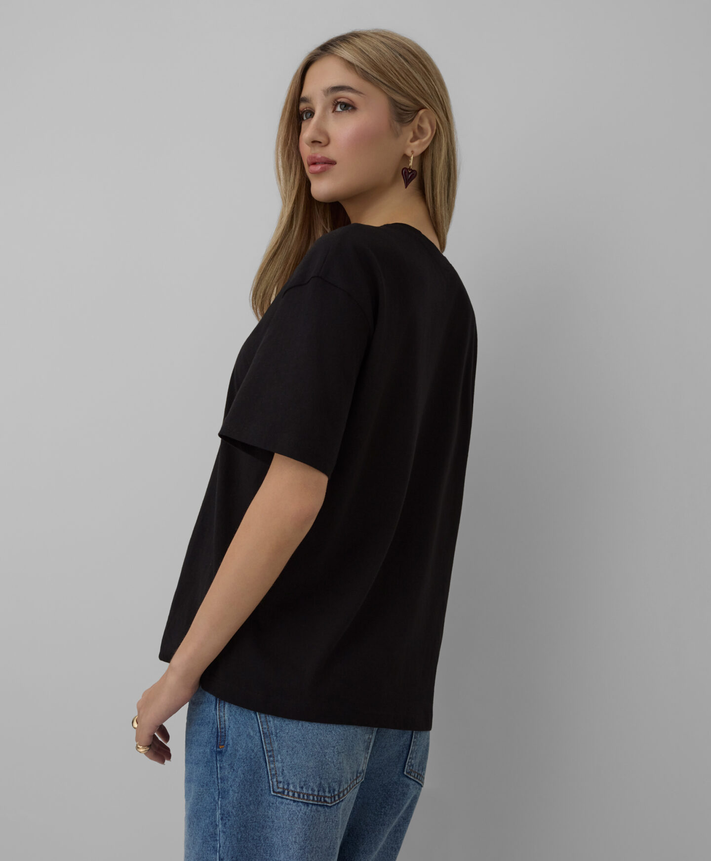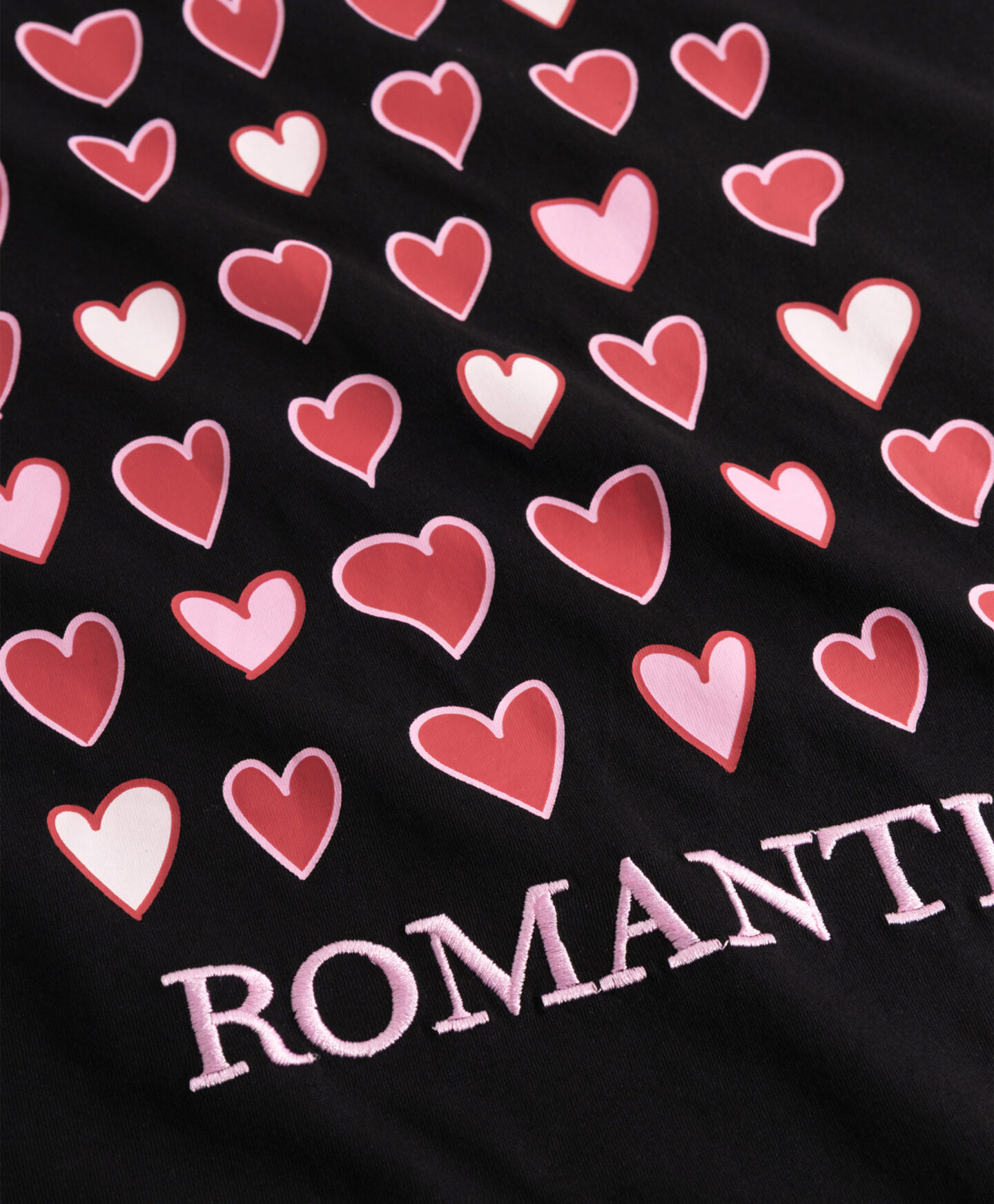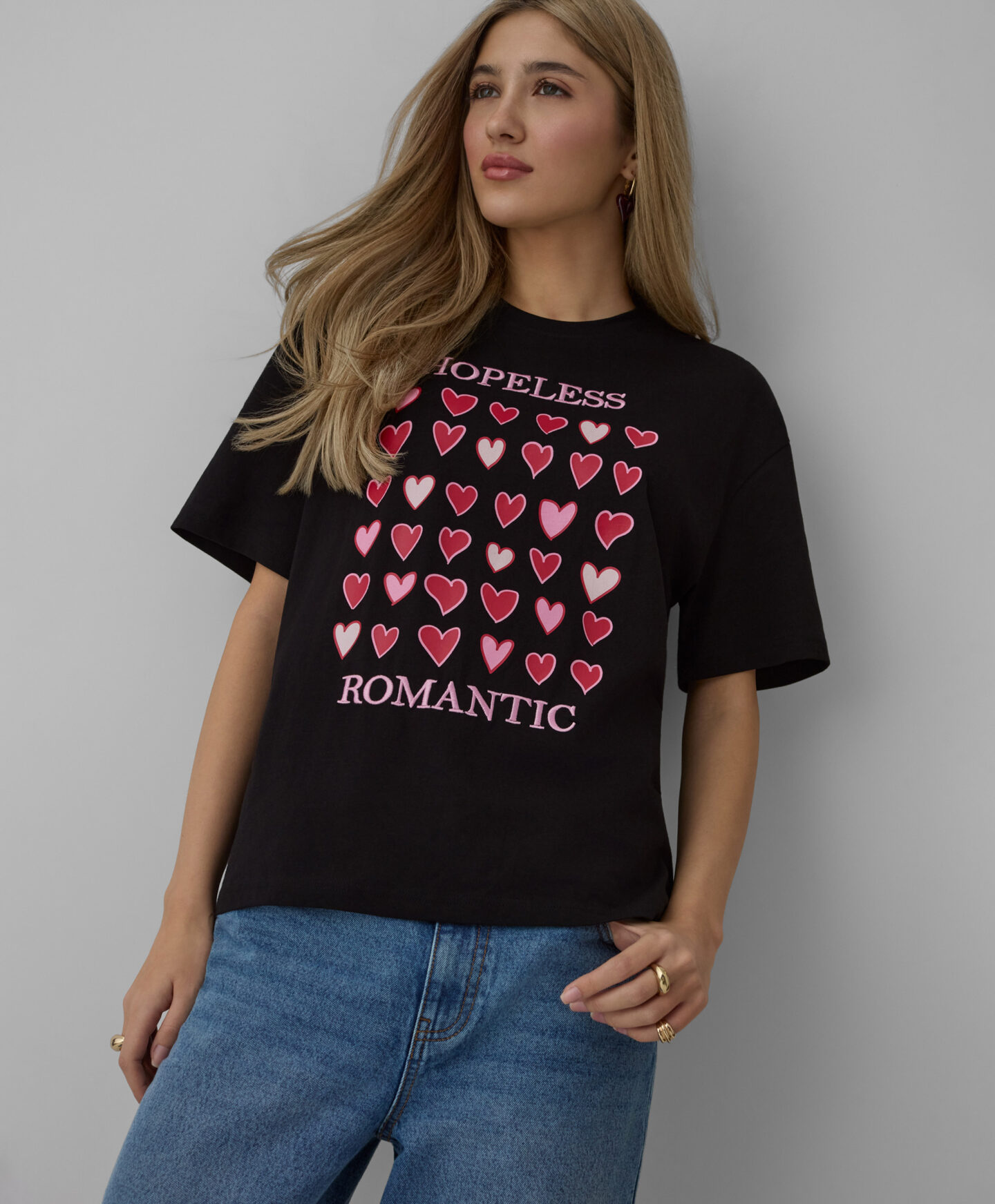 Majica kratkih rukava s uzorkom srca za žene, napravljena od 100% pamuka, prijedlog je koji će ljubiteljice klasičnog stila obožavati. Šarmantan print srca na prednjem dijelu dodaje poseban izgled svakom outfitu. Majica je lagana, mekana na dodir i nježna prema koži.