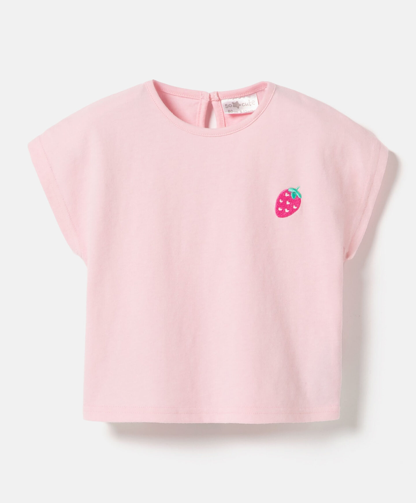 Majica za bebe-djevojčice, napravljena od 100% pamuka, predstavlja suštinu dječije mode. Motiv jagode daje poseban šarm. Pamuk je prozračan i izuzetno mekan na dodir.