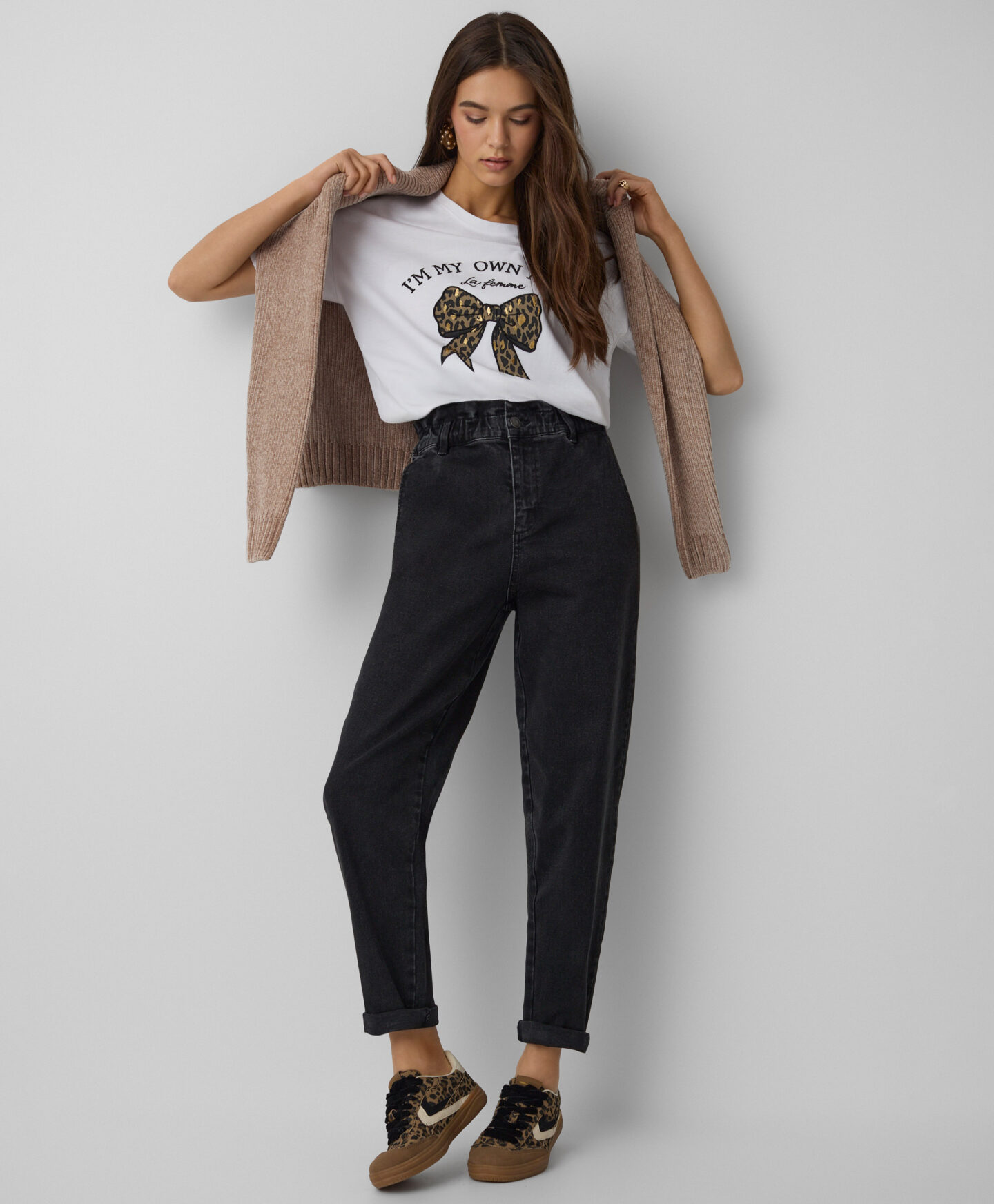 Majica s mašnom za žene, napravljena od 100% pamuka, savršena je i za svakodnevno nošenje i za posebne prilike. Materijal je prijatan za kožu i garantuje udobnost tokom cijelog dana. Mašna na prednjoj strani suptilan je, ali upečatljiv detalj koji svakoj kombinaciji dodaje poseban šarm.