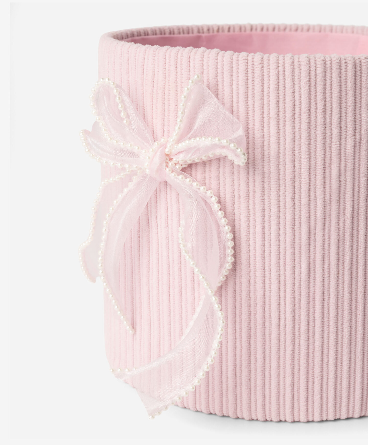 Mala okrugla kutija s mašnom suptilan je dodatak svakoj prostoriji. Idealna je za odlaganje sitnica poput nakita, ključeva ili drugih drobnica, ali i kao ukras. Budući da nema poklopac, omogućava brz i lak pristup sadržaju. Zahvaljujući svom elegantnom dizajnu, možete je postaviti na noćni ormarić u spavaćoj sobi ili na radni sto u kancelariji.