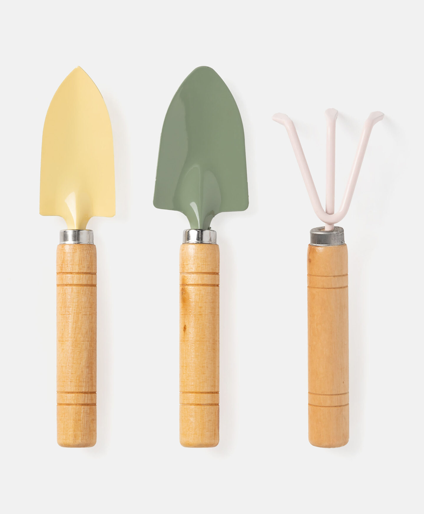 Set malog vrtnog alata (3 komada: 2 lopatice i grablje) praktičan je i kompletan set za sve koji rade u vrtu, na balkonu ili njeguju sobne biljke. Omogućava precizan i efikasan rad. Svaki alat napravljen je od izdržljivog metala i ima ergonomsku drvenu dršku koja osigurava udoban hvat i kontrolu. Set je kompaktan i estetski.
